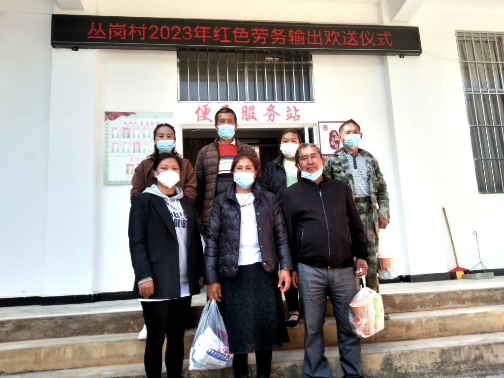 1月26日下午,勐糯镇举行2023年第一批“红色劳务”输出欢送仪式。丛岗村6名外出务工群众将于1月27日通过“红色劳务”输出到江苏务工就业。