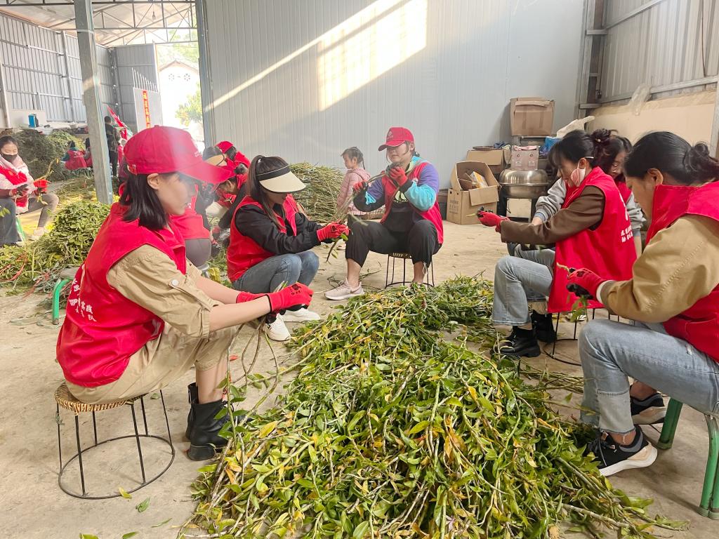 为大力弘扬“奉献、友爱、互助、进步”的志愿精神,3月8日一早,镇政府27名女职工到海头社区新寨子组石斛加工厂开展石斛鲜条加工志愿服务活动,经过技术人员简要的加工培训讲解后,大家摩拳擦掌,跃跃欲试。你剔除叶片,我绑牢枝条,加工活动持续了一个半小时,共加工石斛鲜条600余斤,志愿者们奉献了爱心,对“斛农”的艰辛也有了更深刻的感受。