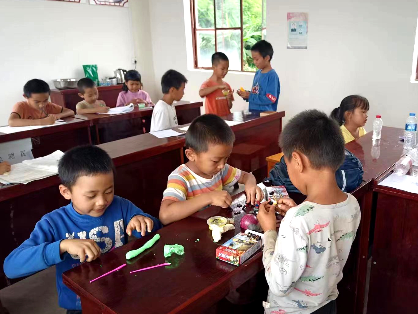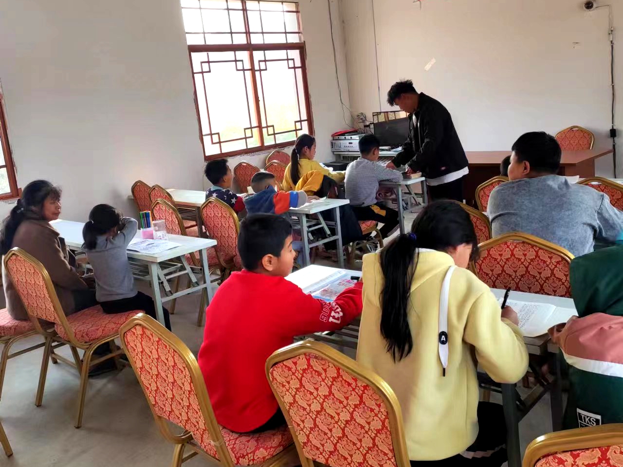 田坡社区为丰富儿童假期生活,利用小组活动场所开展抓教育促发展活动。课堂上孩子们认真写着作业,遇到困难题目“不懂就问”,“志愿老师”也耐心引导,与孩子一起攻克难题,帮助他们养成了独立思考、主动学习、尊重老师的好习惯。