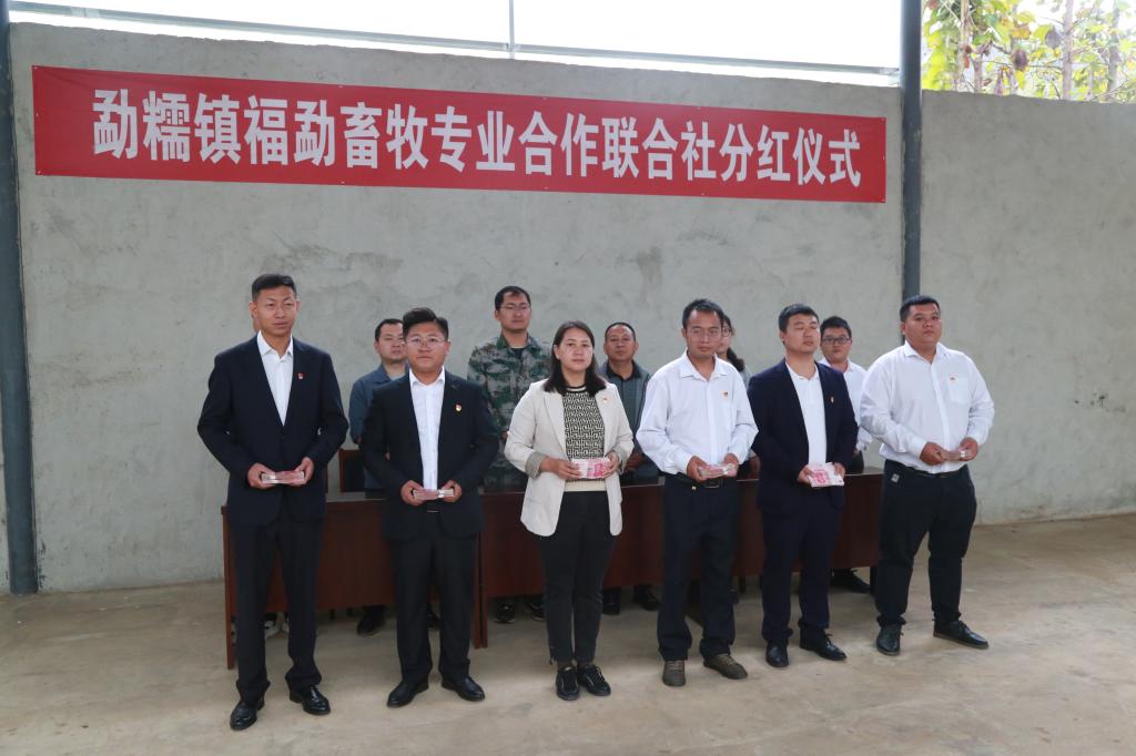 4月3日,借助龙陵县党组织领办农民专业合作社现场推进会契机,勐糯镇党组织领办合作社镇级联合社——勐糯福勐畜牧专业合作联合社进行现场分红,6个村(社区)每村2万元,共计12万元。
