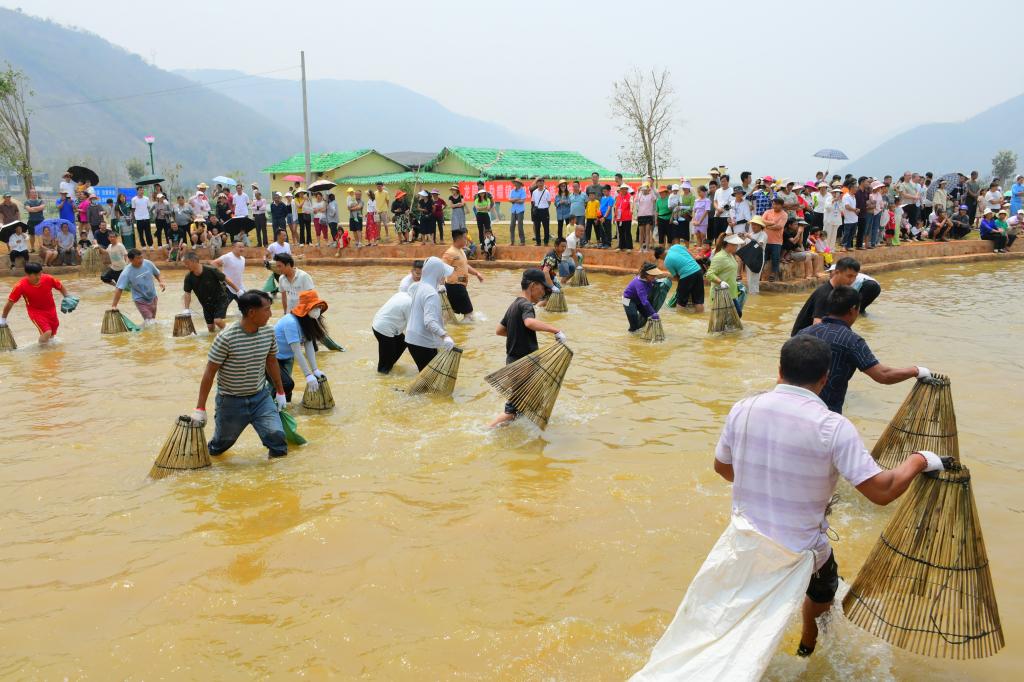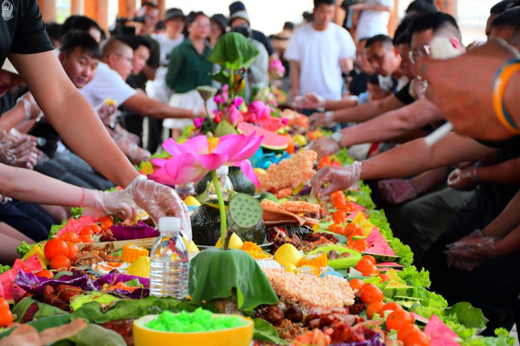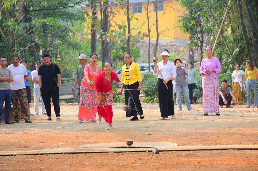 泼水节是傣族一年中最盛大的传统节日,活动期间在进一步发展乡村旅游的同时也传承和保护了民族文化。傣家人穿上节日盛装,采花、堆沙、洗佛,手提水桶,手持鲜花向贵宾、长者、亲友、路人泼洒祝福之水。社区举办全国“四季村晚”示范展示,组织陀螺、罩鱼、斗鸡等竞技赛,营造浓厚的节日气氛。傣韵古道成为特色展销一条街,各色小吃、农特产品琳琅满目,小海湿地公园里划竹筏、游花海、赏灯火,满足了八方来客游玩需求。