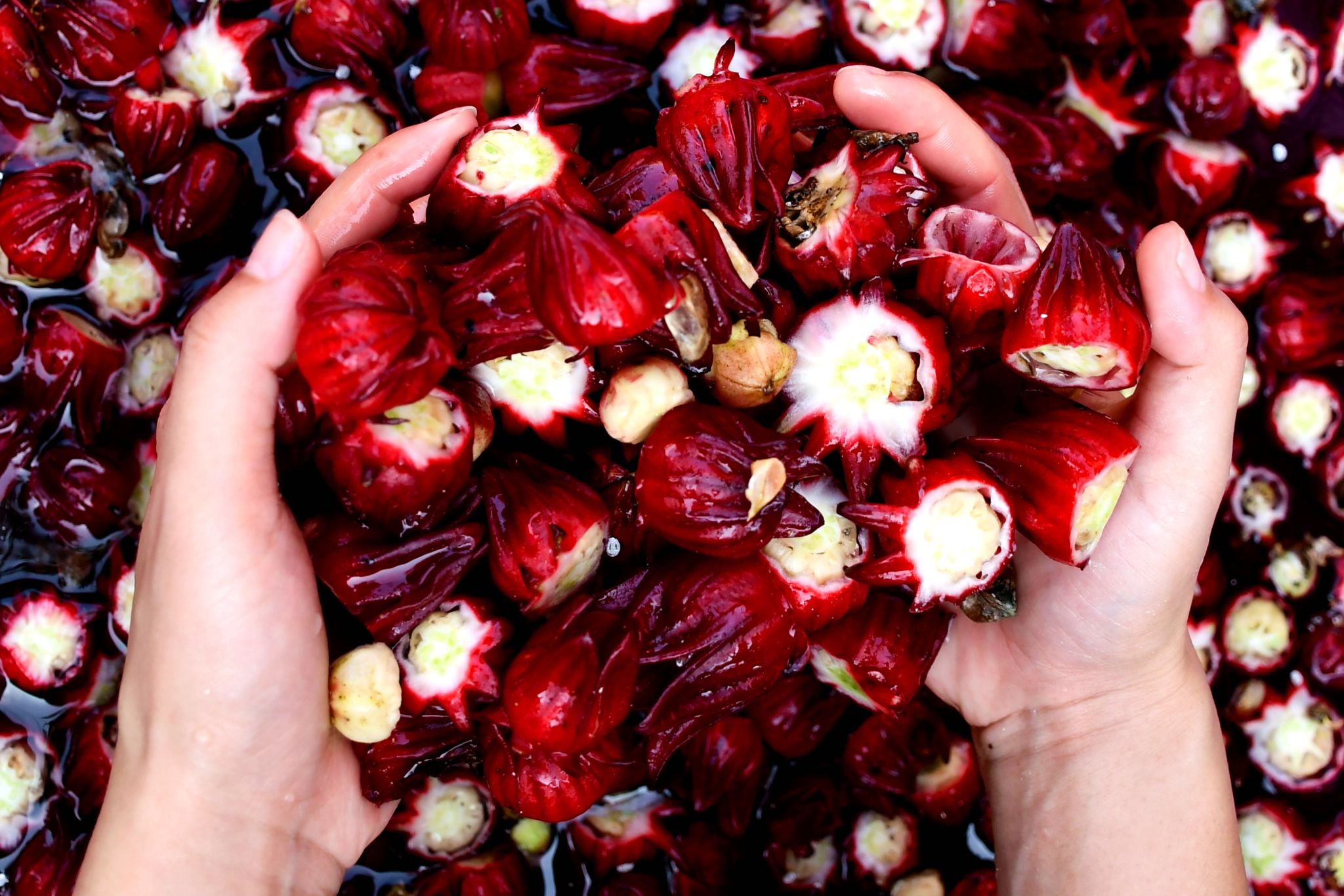 洛神花学名玫瑰茄,又叫洛神葵、山茄等,一般在秋天开放,花萼杯状,红艳粲然,十分美丽。它不仅“颜值高”,而且“医术好”,花、果等均可入药,富含花青素、有机酸等多种成分,能够清热解毒、美容养颜、降血压、降血脂,颇受欢迎。