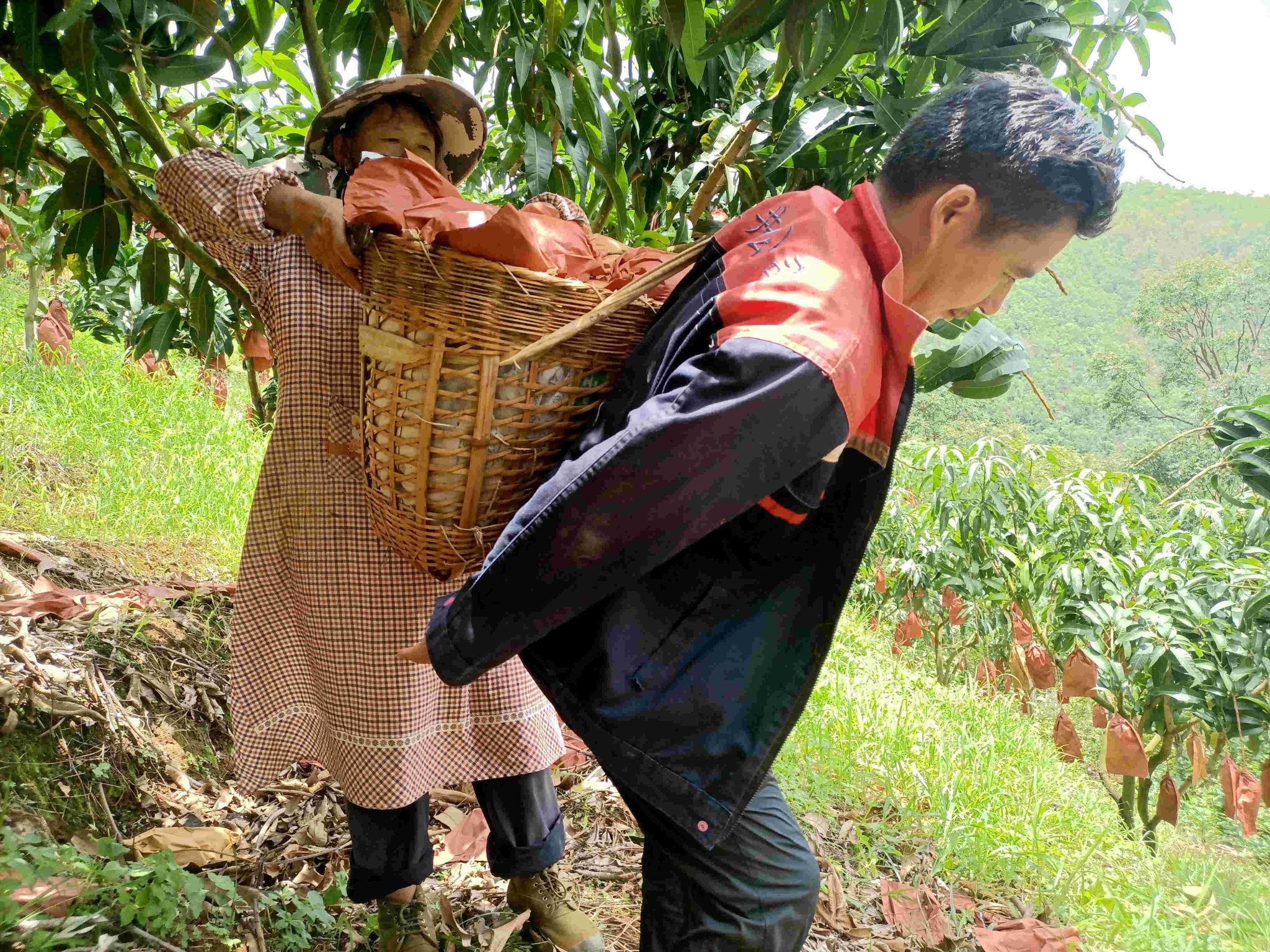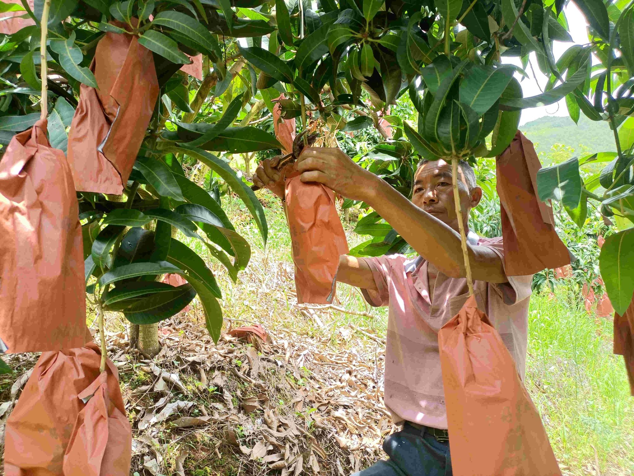 “一路风景,一片产业”,跟着前来交售的果农来到一片芒果林,只见一片繁忙的景象。果农们来回穿梭,熟练地采摘、装篮,将一筐筐芒果放进的三轮车,脸上洋溢着丰收的喜悦。果农赵兴其说:“今年成熟期雨水较少、阳光充足,果园里的芒果比往年更加香甜,我种了3种品种:金煌芒、台农、小奥,种了8亩多,每株芒果产值有80斤—100斤,预计今年可卖5万左右。”