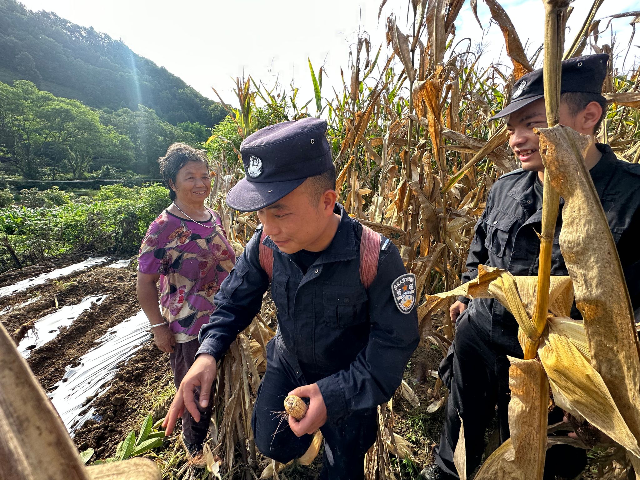 时下,正是玉米收获的季节,9月21日,沟心寨村驻村工作队员与打黑边境检查站民辅警积极开展“助力玉米抢收”活动,深入到蛮关河的田间地头,积极帮助群众秋收,以实际行动为群众尽一份心、出一份力。