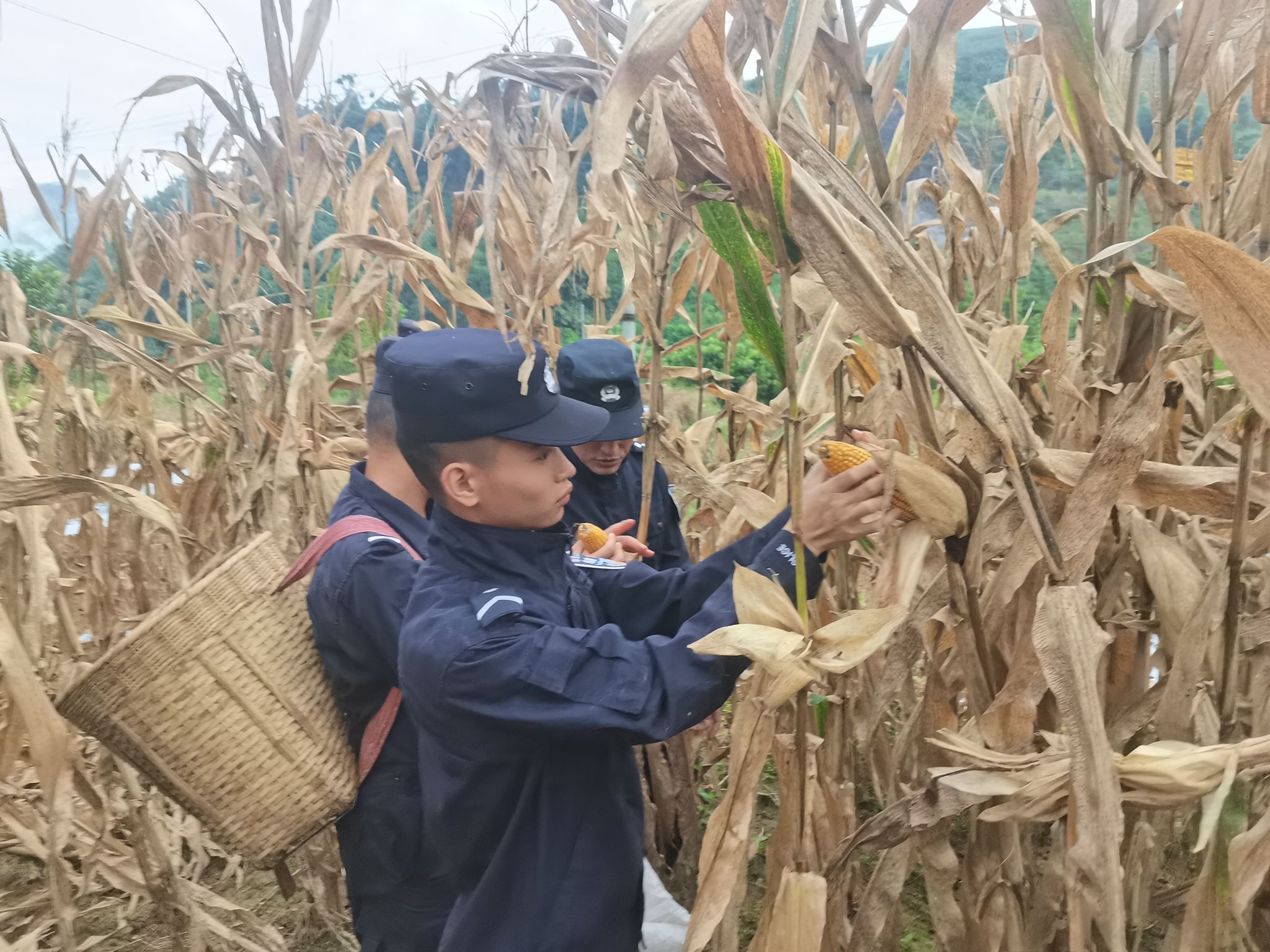 “真的太感谢你们了,今天要不是你们帮忙,这些玉米又要被雨水泡了,我一个人又要好几天才能收完了……”看着收割完的玉米,农民激动不已,握着工作人员的手连连道谢。