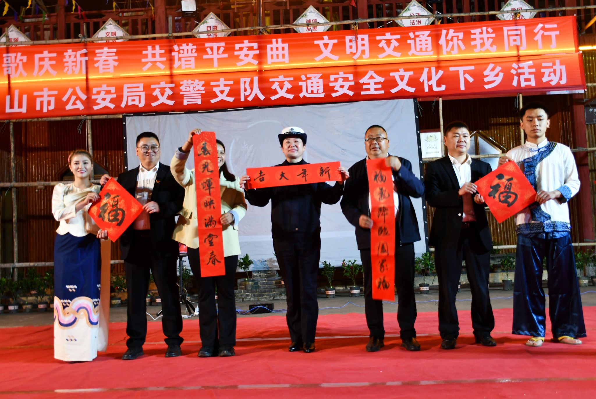 活动过程中,保山市公安局交警支队党委副书记、政委蒋树红同志,勐糯镇党委书记杨长昌同志,勐糯镇党委副书记、镇长熊正涛同志为现场观众送春联和“福”字,一副副春联、一个个“福”字承载着平安和谐、吉祥如意的祝福,为即将来临的春节增添了浓浓的喜庆氛围。