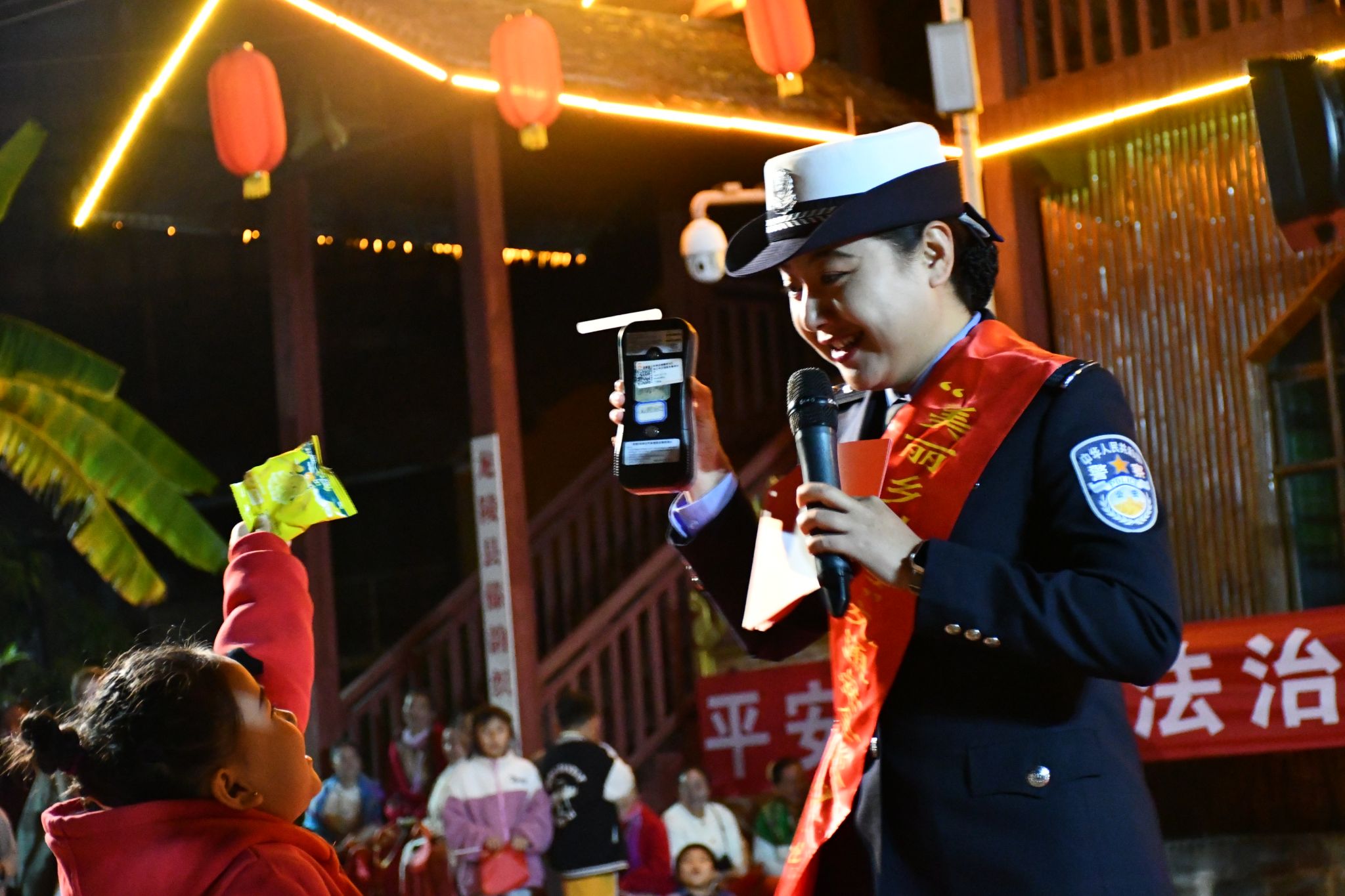 为进一步增强宣传效果,文艺汇演过程中还穿插有奖问答送安全头盔环节,结合题目问答,对安全头盔佩戴、安全文明行车常识等交通安全法律法规进行宣传讲解,吸引现场观众踊跃举手抢答,将现场气氛推向高潮。其中,对酒驾醉驾、一盔一带、三轮车违法载人采取了体验互动的形式。一是现场饮用不同种类酒精饮品以及食用含酒精的食物后进行呼气式酒精测试,让现场观众对酒驾醉驾有更加直观的认识。二是用西瓜进行了佩戴头盔模拟测试,分别用铁锤敲打佩戴头盔的西瓜和不戴头盔的西瓜,让现场观众直观感受到戴与不戴的区别,增强群众的安全意识。