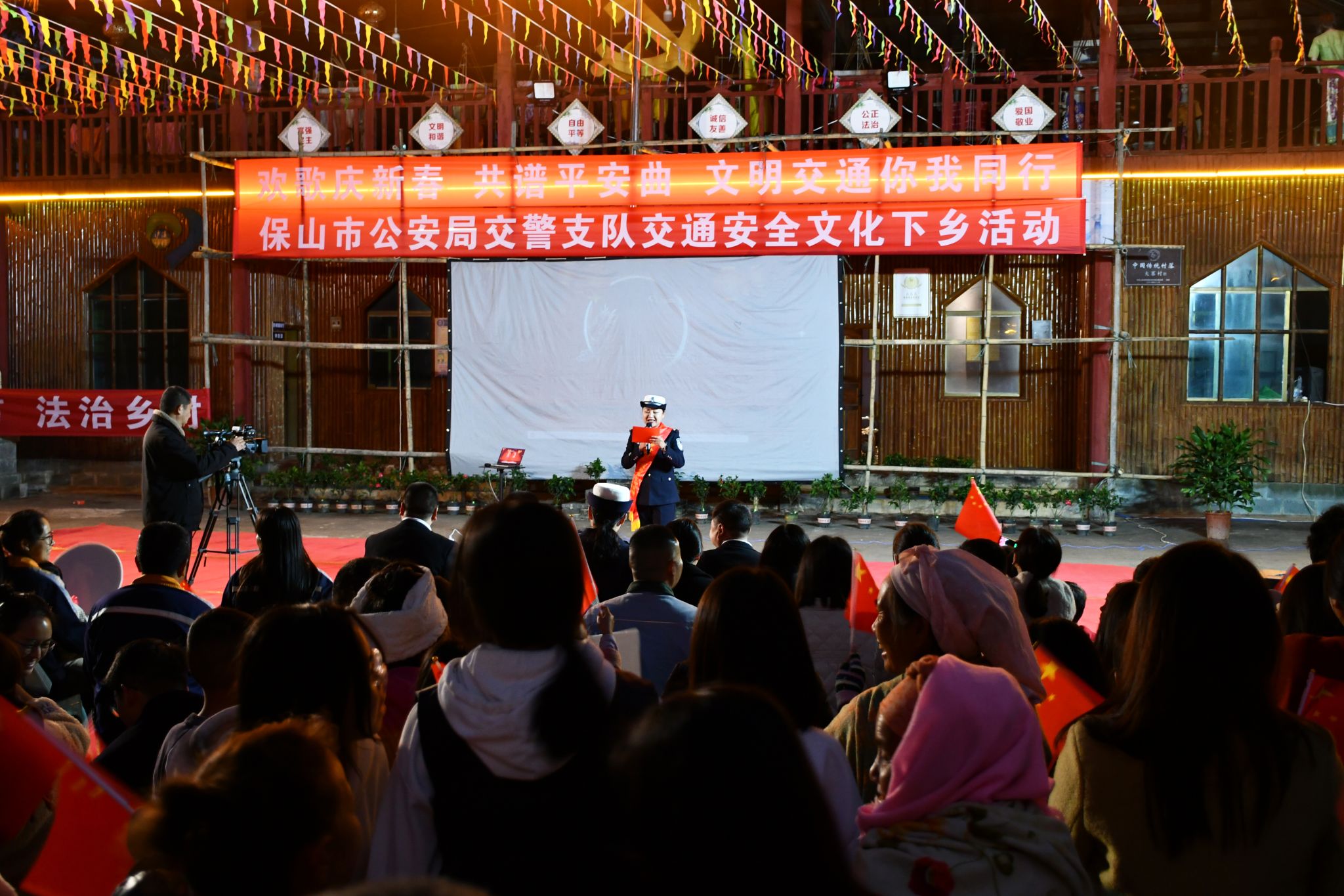 为进一步抓好农村地区的道路交通安全宣传教育工作,大力提升农村地区群众交通安全意识、文明意识、法治意识,2024年2月1日,由保山市公安局交警支队主办,龙陵县公安局交警大队、勐糯镇人民政府、勐糯镇大寨社区联合举办的保山市“美丽乡村行”交通安全巡回宣传暨交通安全文化下乡活动在龙陵县勐糯镇大寨社区举行,巡回宣传活动内容丰富,形式多样,线上、线下同开展,宣讲、体验嗨翻全场。