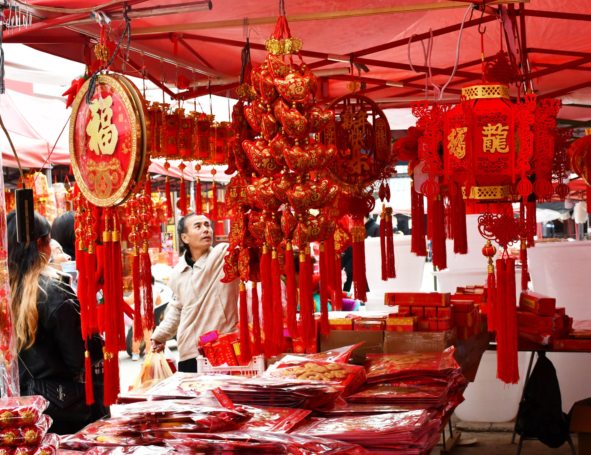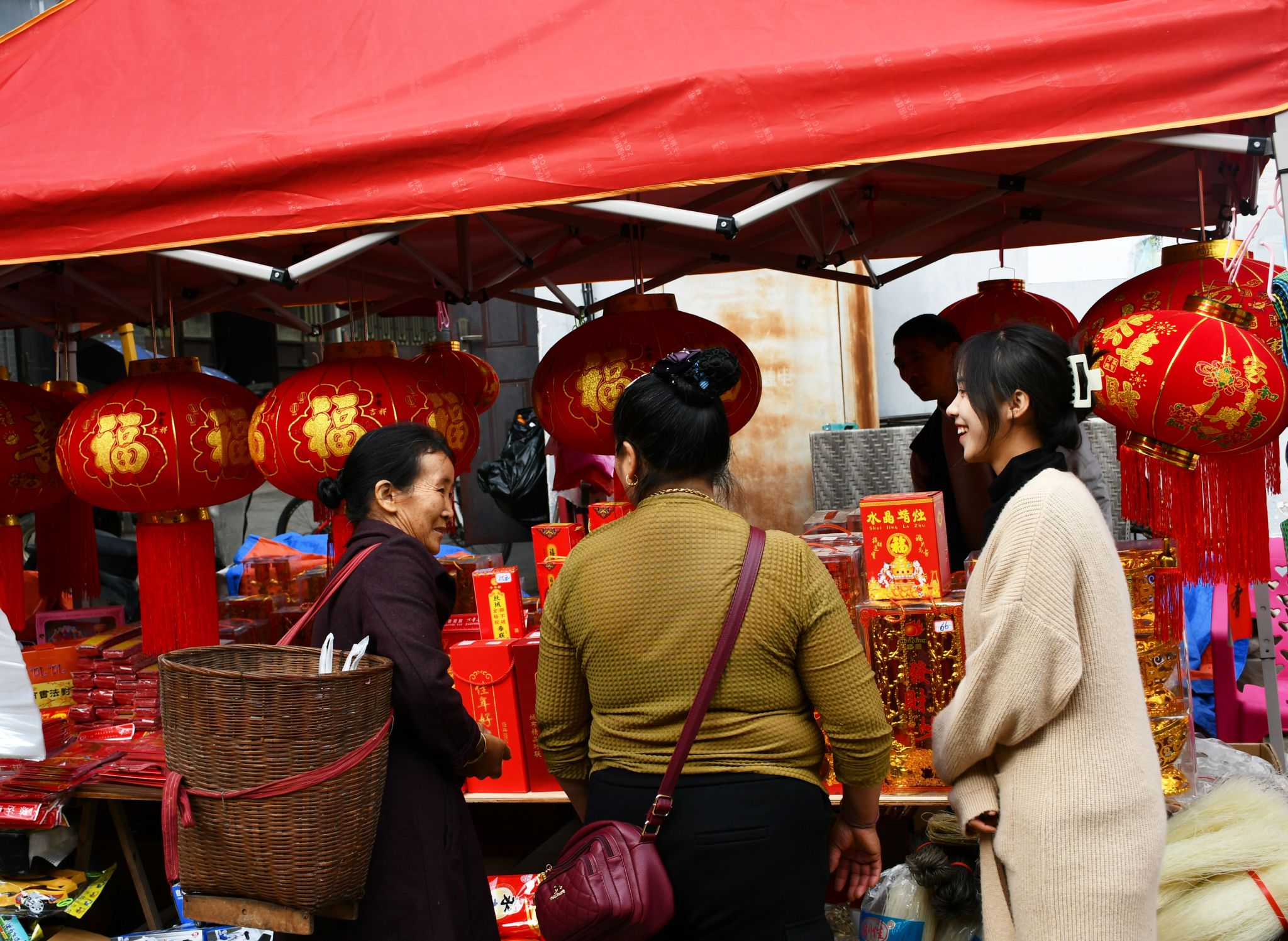 “大红灯笼高高挂,年货年礼列街旁,新春祝福声声响,喜气洋洋满人潮。”刚踏入勐糯镇,便被浓厚的春节氛围紧紧包围,有别于城市标准化、流程化的氛围营造,勐糯的春节充满了乡土味、人情味、传统年味。