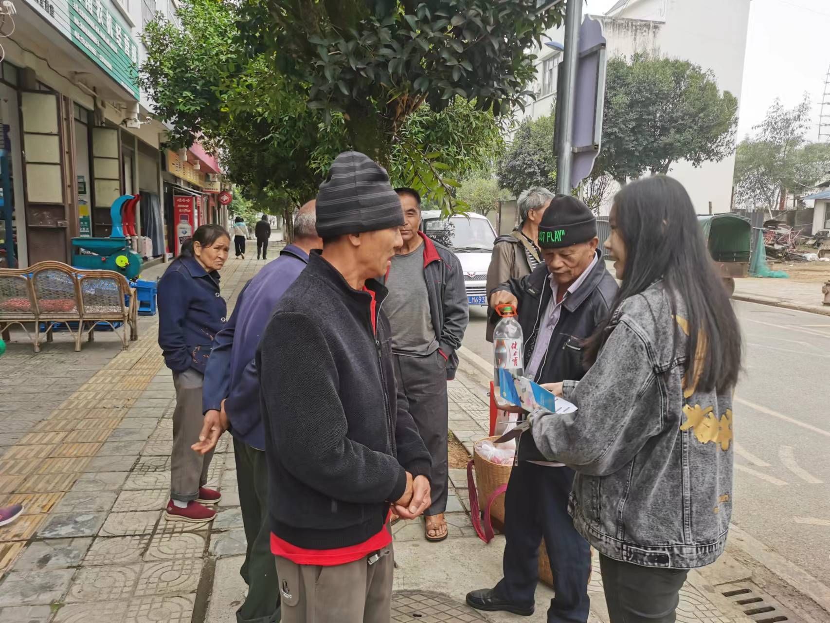 利用线上与线下相结合的方式,多方面多维度做好城乡居民基本养老保险政策宣传工作。一是线上通过微信公众号、微信群等平台宣传收费标准、收缴范围、缴费时间及缴费方式、待遇申请等政策内容,不断提高群众对政策的知晓率,激发群众自主缴费的积极性。二是线下充分发挥“康乃馨”志愿服务队作用,通过进村入户、集镇街天摆摊设点等方式进行宣传,确保政策宣传无遗漏、无死角。