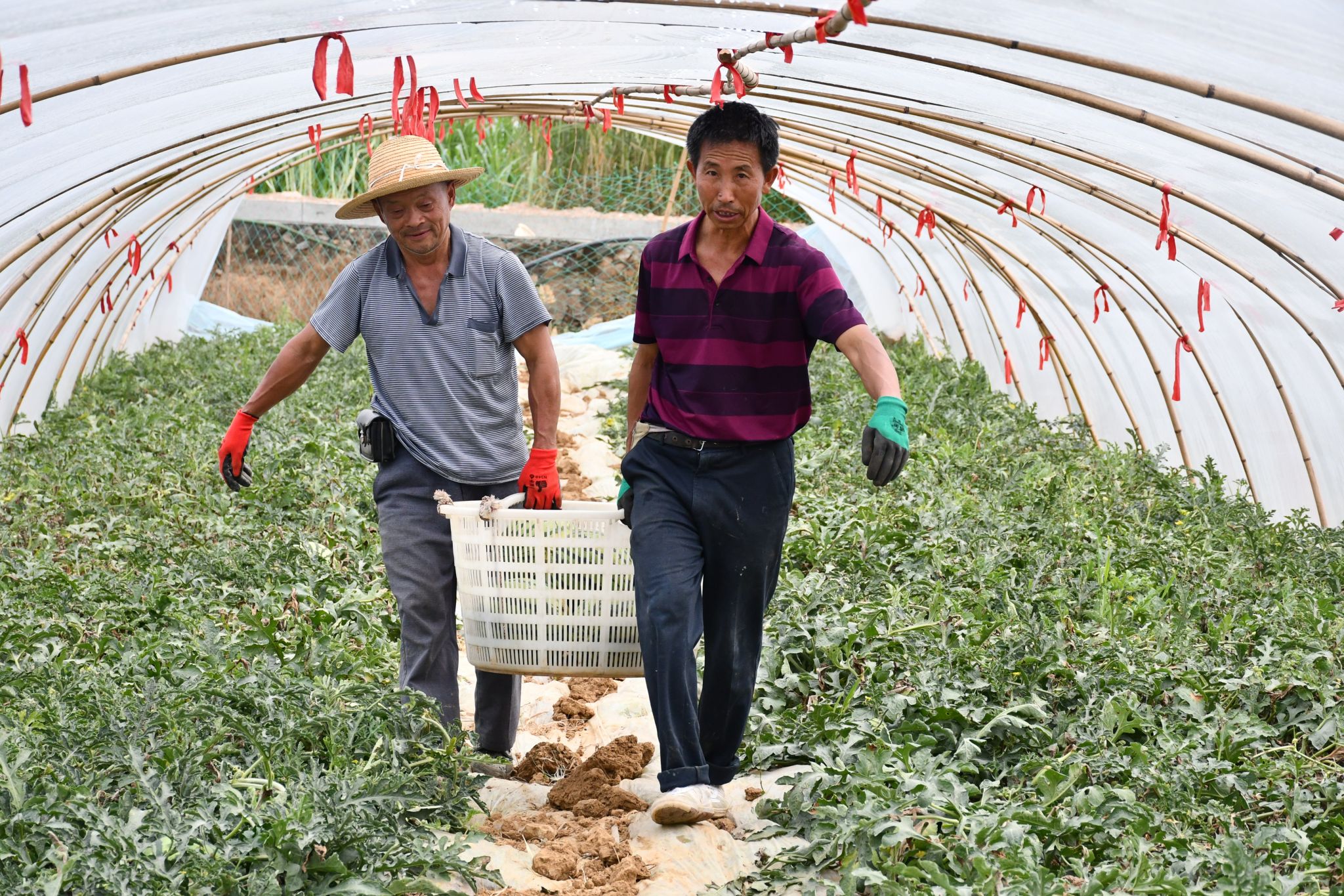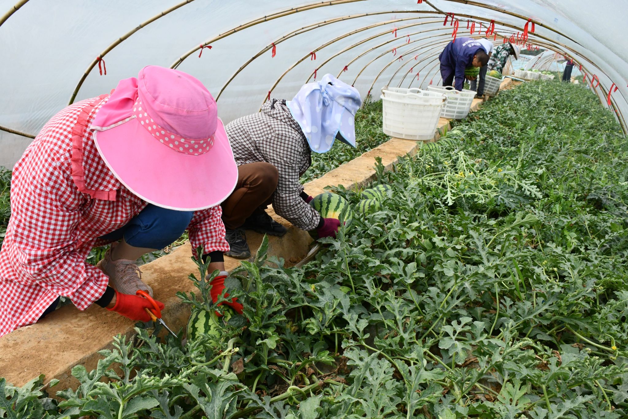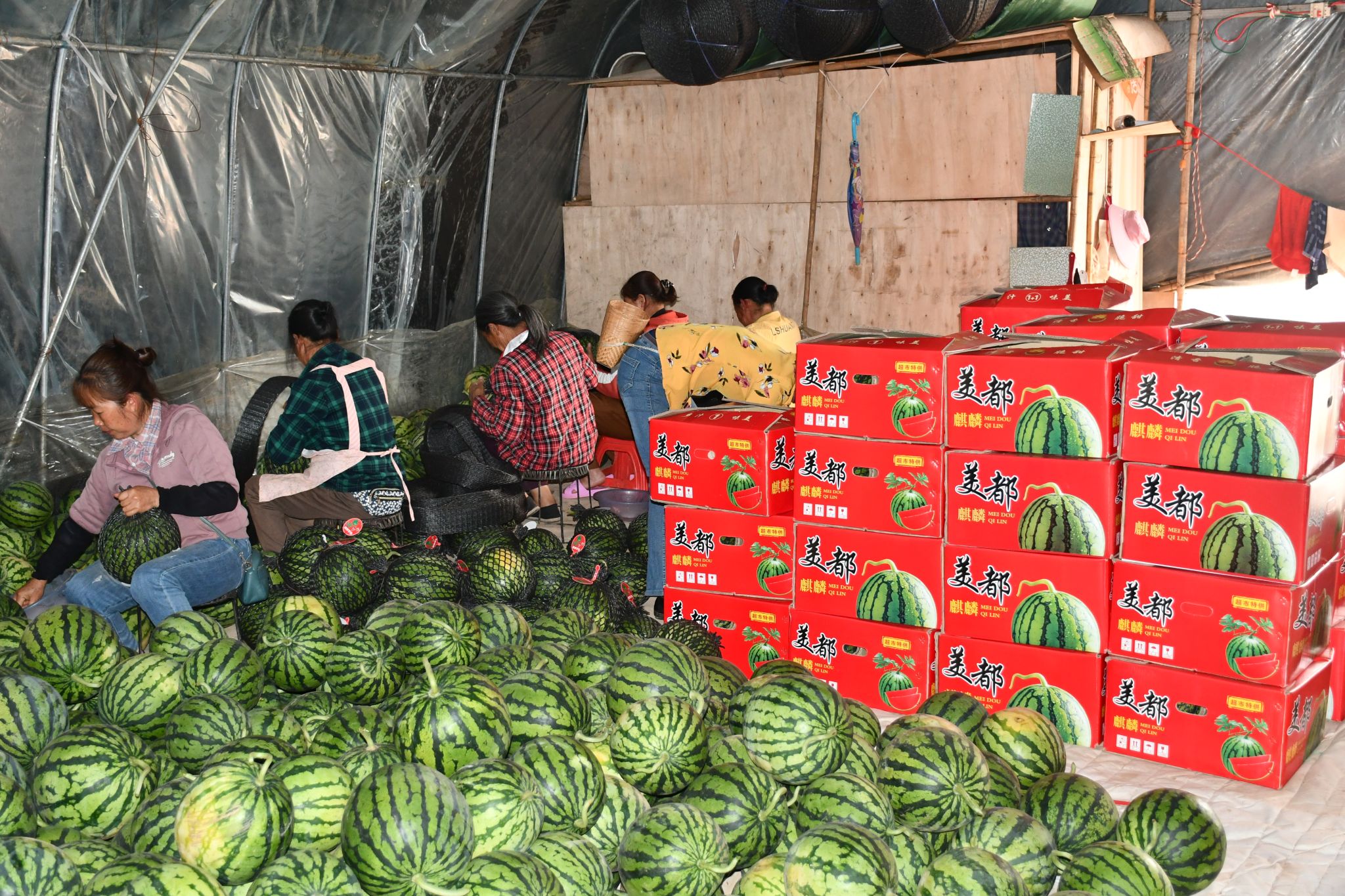 眼下正是西瓜采摘时节,来到美都麒麟西瓜种植基地,成熟饱满的西瓜掩映在藤蔓之间,工人们正忙着采摘、分拣、装箱,准备发往昆明、成都等全国地各地,箱子里的西瓜圆滚滚、绿油油,让人垂涎欲滴。