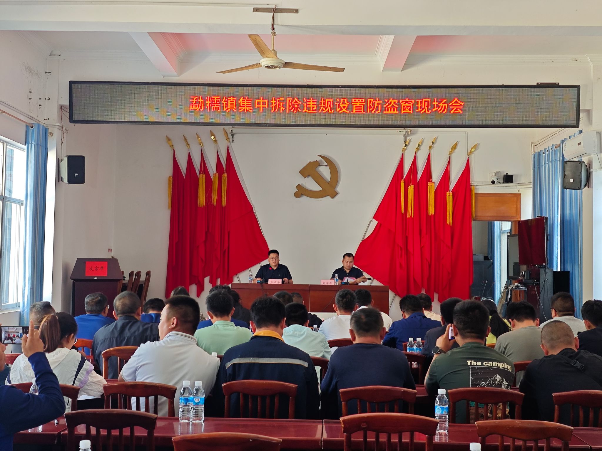 通过微信公众号、应急广播、微信群组和利用公告栏等平台,多渠道、多形式宣传违规设置防盗窗的危害性和拆除工作的重要性。同时,组织召开群众会、党员会,与群众面对面交流,听取他们的意见和建议,达成共识,增强群众参与拆除工作的积极性。截至目前,全镇共开展各类宣传活动4场次,在人员密集场所张贴《关于拆除人员密集场所门窗设置影响逃生和灭火救援的障碍物的通告》40余处,引导群众积极配合防盗窗拆除工作,为自己和家人打通“生命通道”。