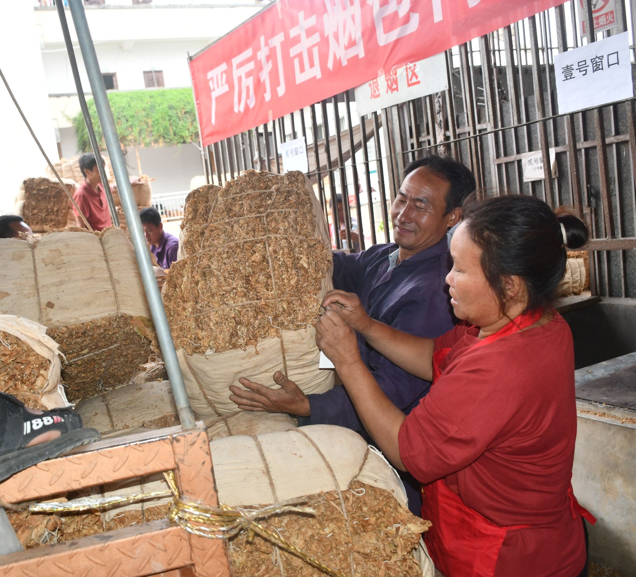 收购现场,烟农们按照登记的交售顺序将打包好的香料烟叶从各种交通工具上搬运下来,有序地排着队,等待交售,满脸丰收的喜悦。收购站的检验人员按照定级收购标准耐心细致地进行质检、定级、过磅,整个交售现场井然有序,收购各个环节都在公开、透明中进行。
