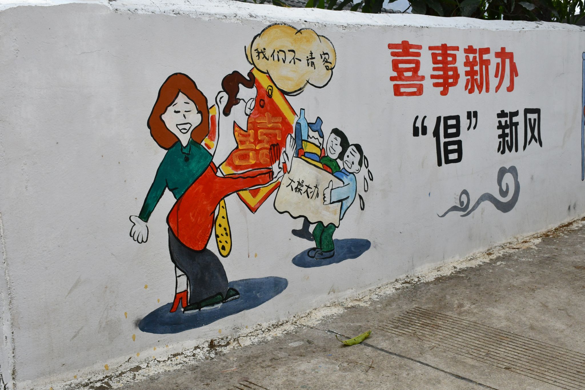“原来单调破旧的围墙画上了文明彩绘,我每天路过时总会不自觉地多看几眼,很是喜欢!”喜事新办、丧事简办、文明祭祀、崇尚科学、注重家风、低碳生活、文明驾驶……勐糯镇丛岗村大田坝村民小组一道60米长的围墙被粉刷一新,一幅幅形象生动的文明宣传彩绘让人眼前一亮,引得路过的群众纷纷点赞。