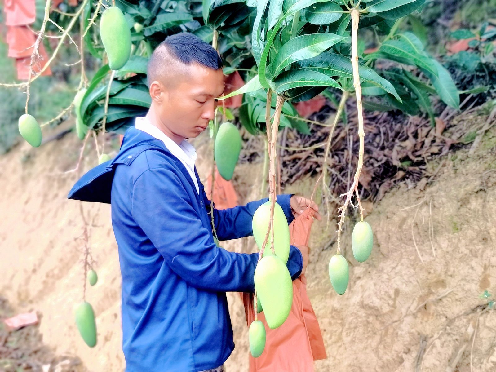 七月,正是芒果挂果的季节,走进勐糯镇丛岗村三台山芒果种植基地,郁郁葱葱的果树、穿着“外套”的芒果、忙忙碌碌的工人,一派热火朝天的景象。