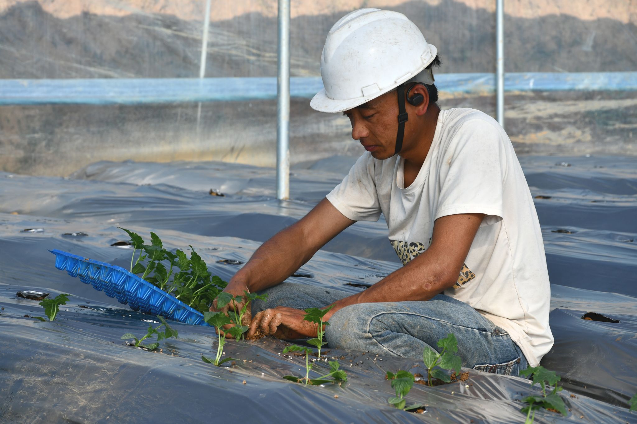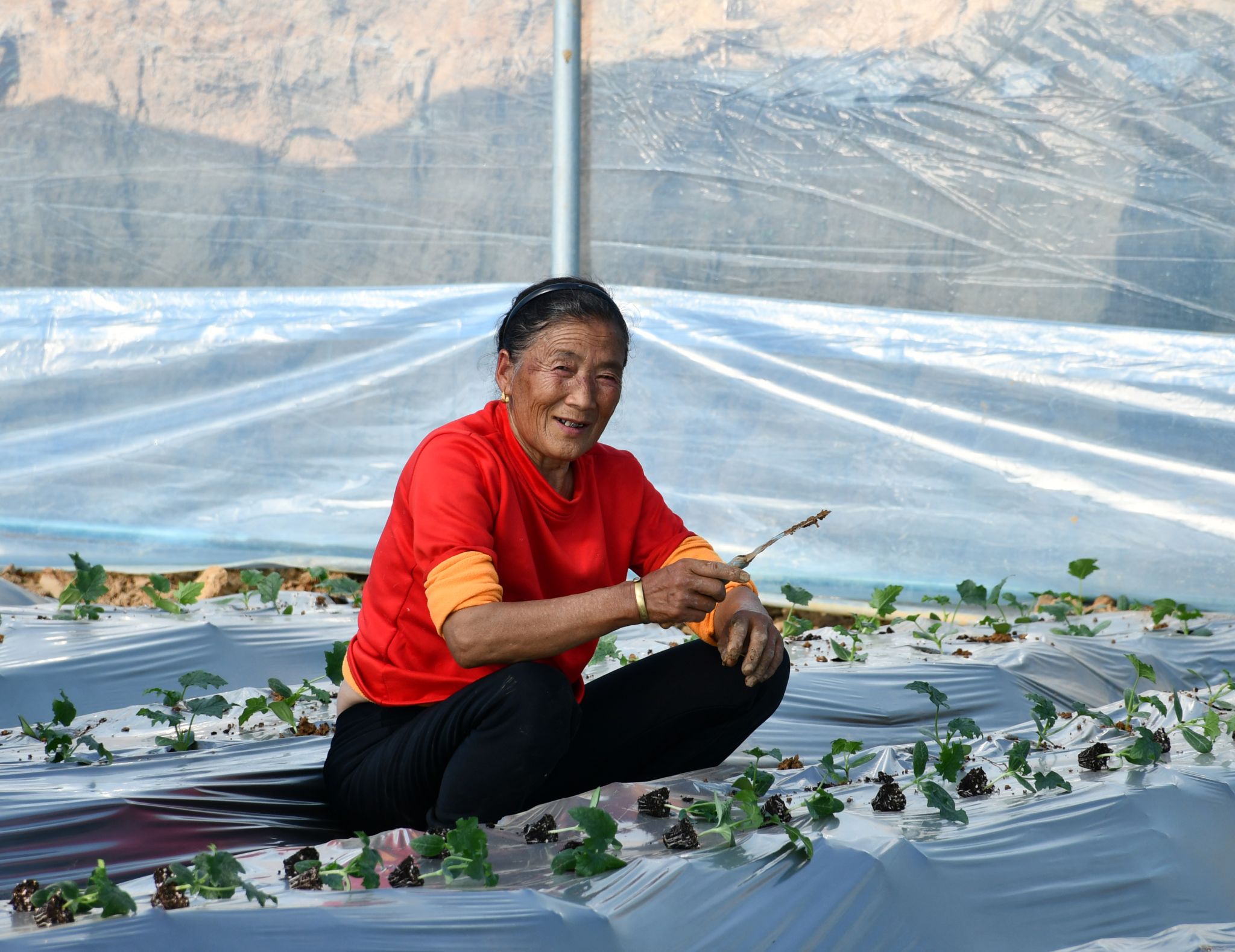 “今天是基地栽种瓜苗的第一天,但我们已经在这里工作好几天了,之前,我们一直忙着铺设薄膜和安装管道。在这里每天能挣120块钱,而且我家就在基地旁边,既能赚钱又能照顾孙子,真不错。”一位正在栽种瓜苗的村民面带笑容地说。听到需要招聘栽种人员,她第一时间报名参与,并动员邻居们参加,对于这份既能顾家又能赚钱的工作,她表示非常满意。