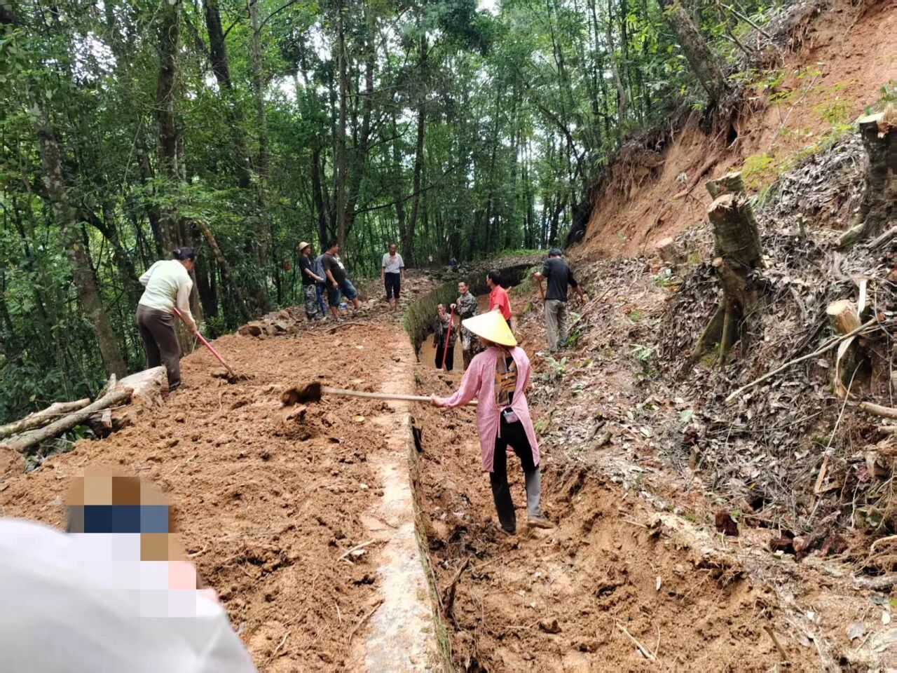 “为民办事”从来不是口号,而是落在实处的行动力。受前期持续降雨影响,丛岗村长岭岗小组唯一的灌溉沟渠被大面积山体滑坡掩埋。彼时正值农业用水旺季,村民种植的无筋豆亟需水分滋养,灌溉问题直接牵动着当季收成,情况危急。