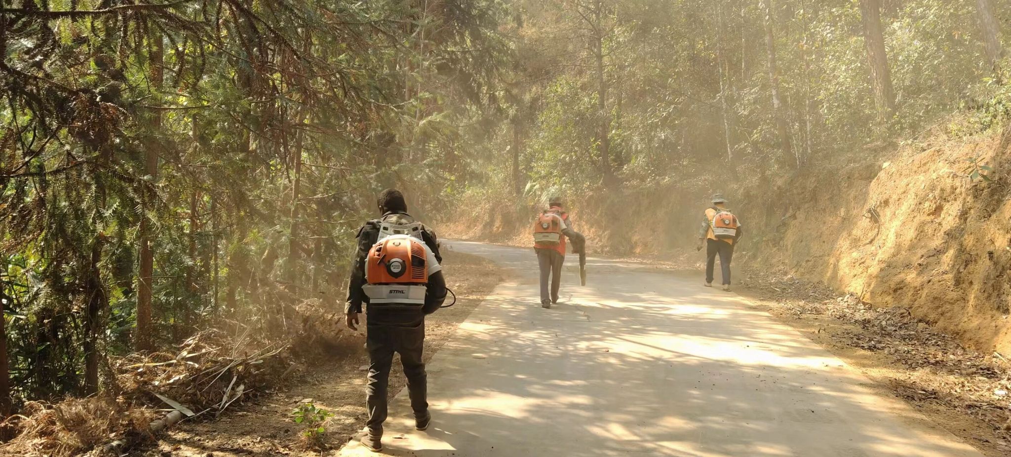 此次清理行动聚焦重点路段,范围长约3公里。镇林业部门共出动专业护林员8名,调配风力灭火机3台、扫帚5把。行动中,护林员们分组分段、协同作战,采取“地毯式”推进的方式,对道路两侧、林缘地带的枯枝落叶、杂草灌木等易燃物进行集中清理,确保不留死角、不留隐患,最大限度降低火灾发生风险。