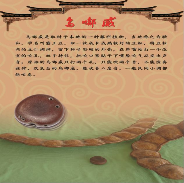 土巴拉乐器有多种,但因其体积偏大,不便携带,现主要推出酒醉筒、小三弦、乌嘟威三种体积较小、方便携带的土巴拉乐器。三种乐器多次参与土巴拉器乐的演奏,有的占主导地位,且多次获奖,是木城文化的主要品牌。酒醉筒在2003年申请为国家专利,小三弦在本地以定做、订购的小规模形式出现,乌嘟威除了能演奏外,多次搬上舞台做道具或饰品使用。此项目的开发,能使三种乐器更好地流通与市场,体现他们的经济价值;其次对木城土巴拉文化暨少数民族文化是一种直接的宣传;三是木城对外宣传的一个重要窗口。