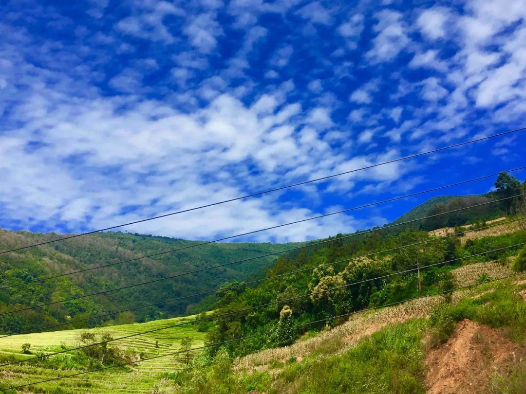 白——山川村寨间的云雾。那漫漫云海笼罩整个小镇,云雾在山谷缓缓传行,一阵雨后,云朵在山间中舞动,气势磅礴,线条优美,依山顺势,连绵向上,层层叠叠。山顶上的白色棉花帽、山腰间的白色玉腰带、山间散布的村寨披着的虚虚实实的白色薄纱,一幅幅不用蘸墨、不用着色且美丽而有底蕴的写意山水画,就此浮现,这一抹“云雾白”是我独有的浪漫。