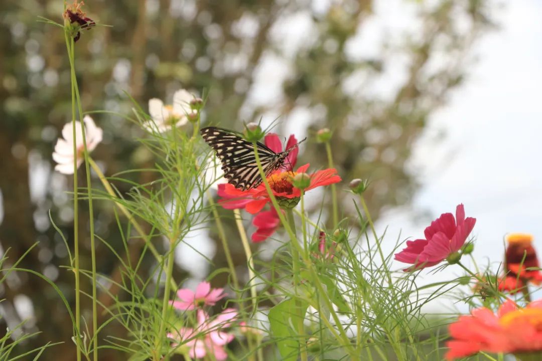 一阵微风吹动,激起格桑花海“千层浪”,花海蜂蝶翩舞,构成一幅浪漫的画卷,令人赏心悦目、心旷神怡。据了解,格桑花又名“格桑梅朵”,花语是幸福、美好时光。“格桑”为藏语,在藏语中,“格桑”是幸福的意思,“梅朵”是花的意思。格桑花是一种生长在高原上的花朵,杆细瓣小,看上去弱不禁风,但却对风吹雨打处置安然。它寄托着木城人民对幸福吉祥生活的期盼,也是坚韧不拔的象征。