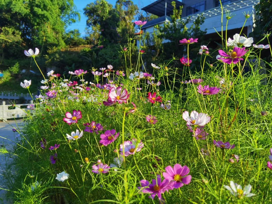 格桑花儿开,乡村美景入画来。随着木城乡部分村组主干道两侧种植的格桑花竞相绽放,淡粉、玫红、白色的格桑花随风摇曳,蜜蜂在花朵上飞舞采蜜,绚丽多彩的格桑花与远处的村庄构成了一幅美丽的山水田园风光画,边境小镇多了一道靓丽的风景线。