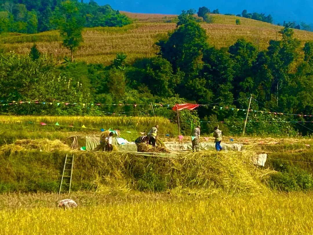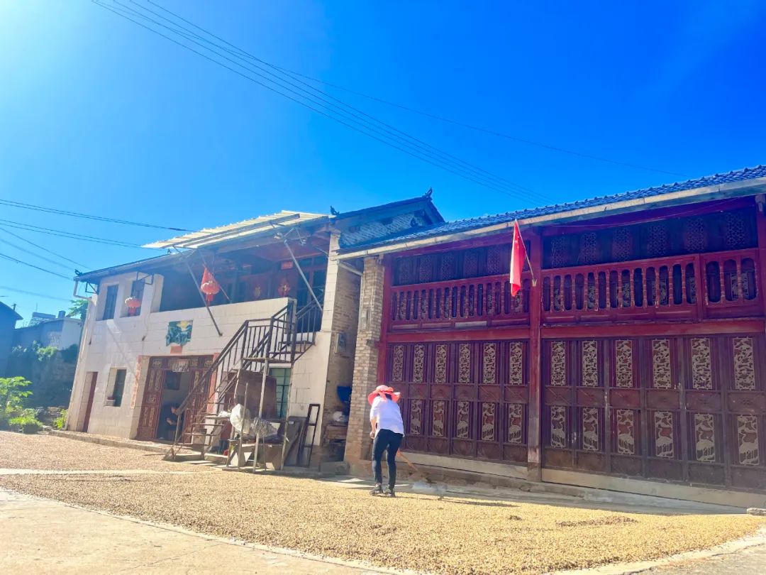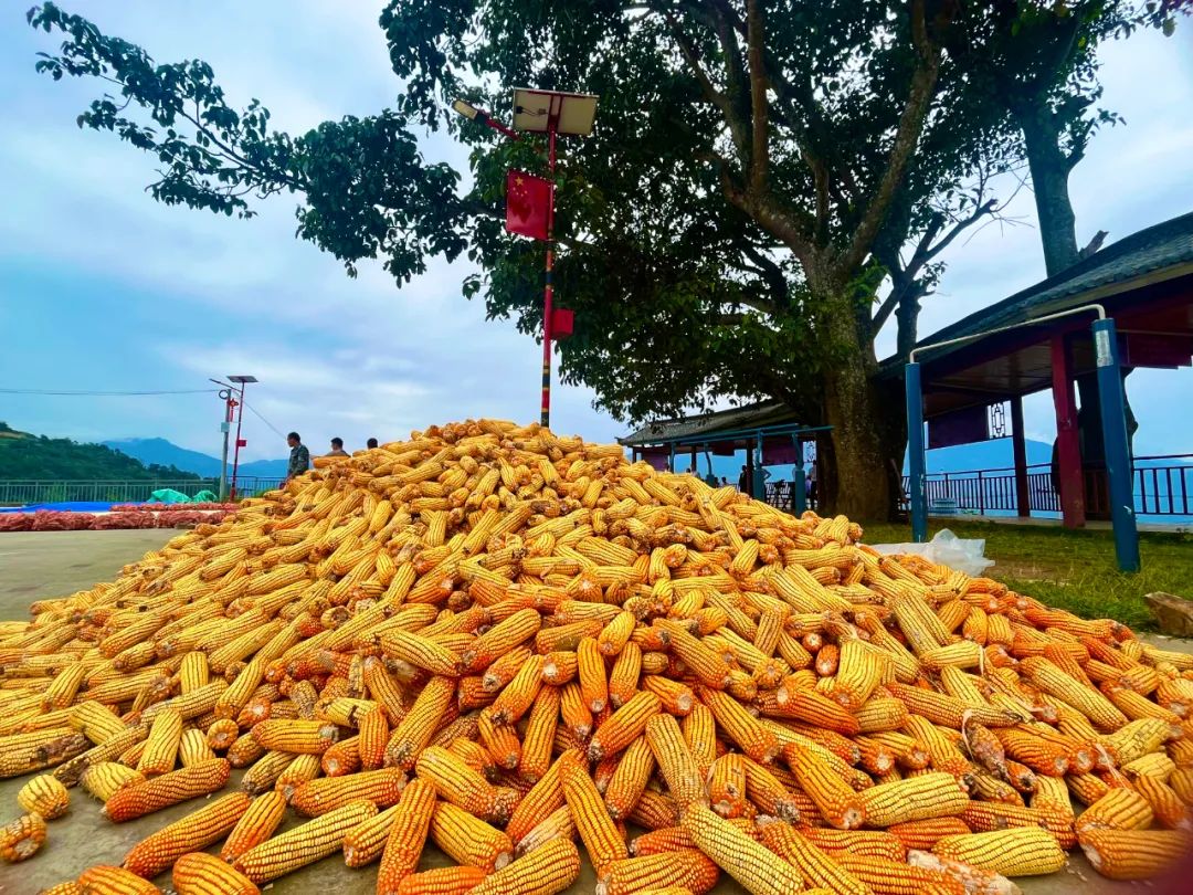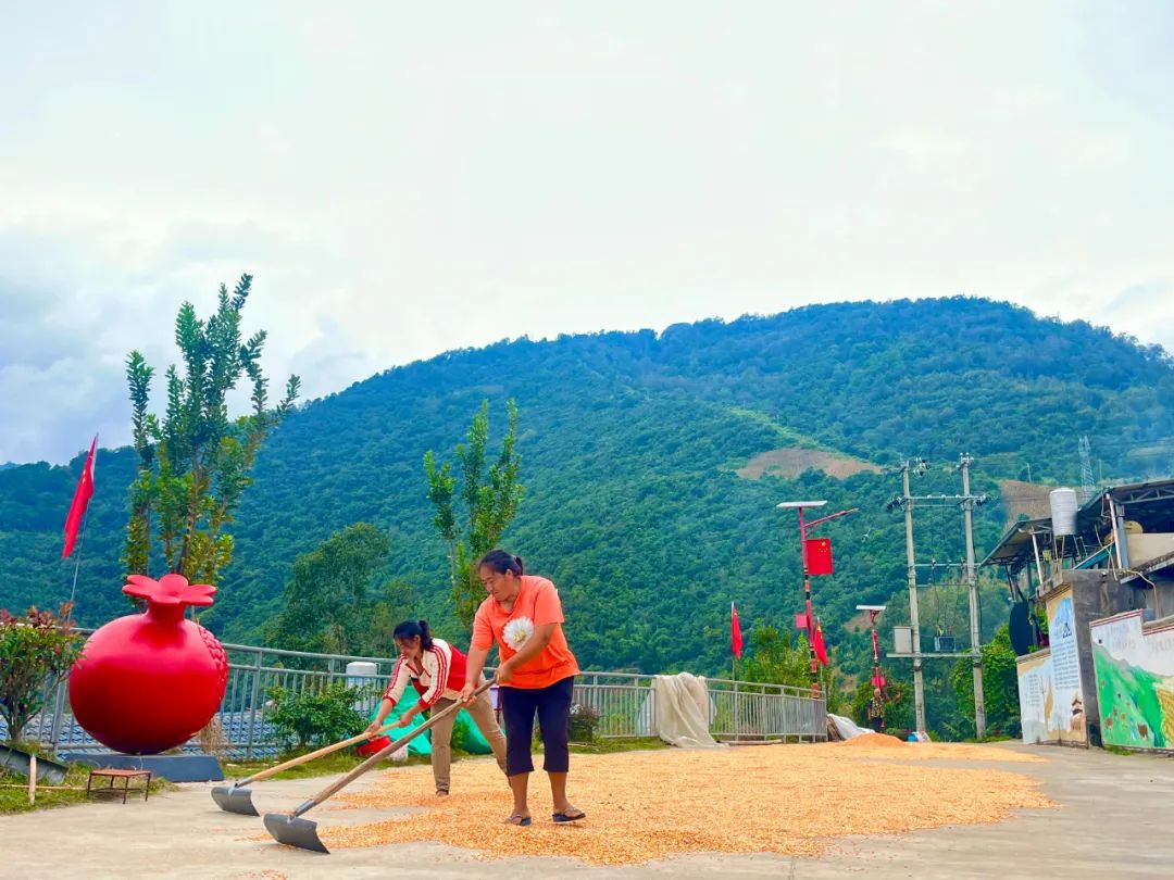 木城的乡亲们趁着晴好天气,将收获的红辣椒、南瓜、玉米、稻谷、草果、咖啡晾晒在堂前屋后,五颜六色的农作物与村寨交相辉映,构成一幅“晒秋”美景图。黄澄澄,红彤彤,这鲜艳的“大地色彩”,绵延了秋日,收获了喜悦。