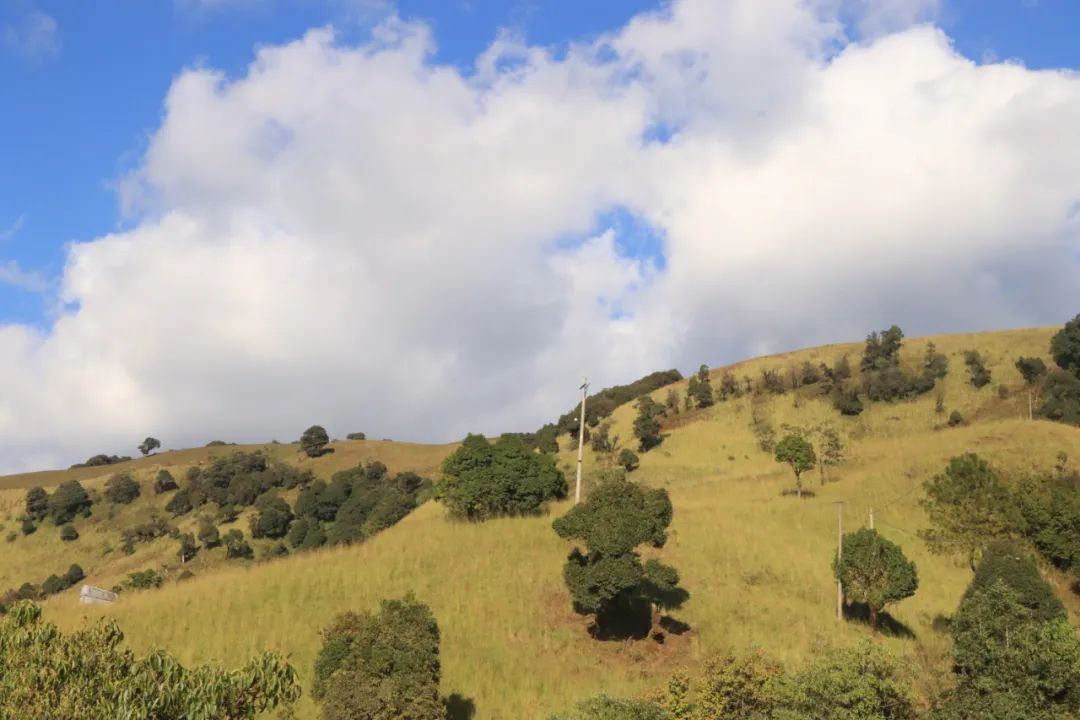 午后,整个草山万籁寂静、天高云淡,羊群漫步其中,用“咩咩”召唤它们,它们会扭头呆呆地望着你,牛儿三五成群,从身旁走过,悠闲地散步、吃草,你可以把你的不开心说给老牛听,困顿疲倦可以被它的一脸呆萌化解,画风会变得和谐有趣,内心会变得宁静而自然。
