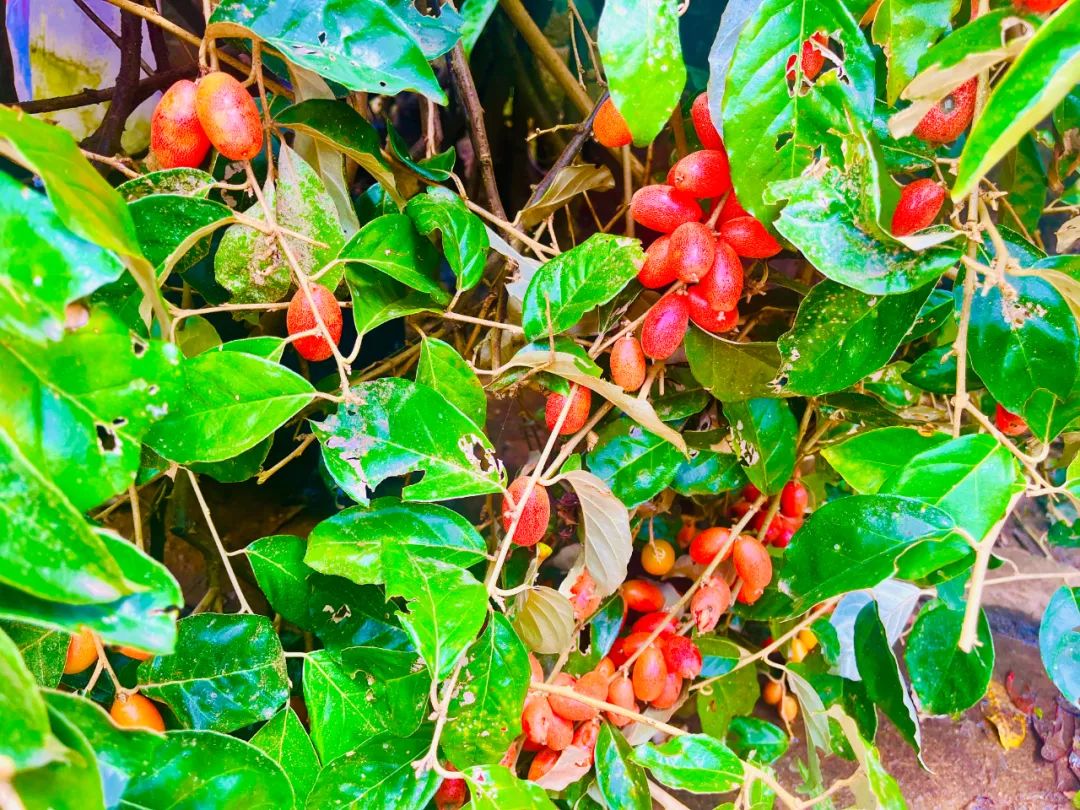 不知是那日渐回升的气温,还是那和煦的阵阵春风拂过,染红了道路边、农家小院里的羊奶果。