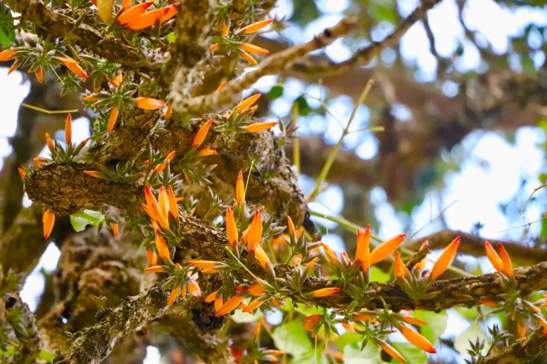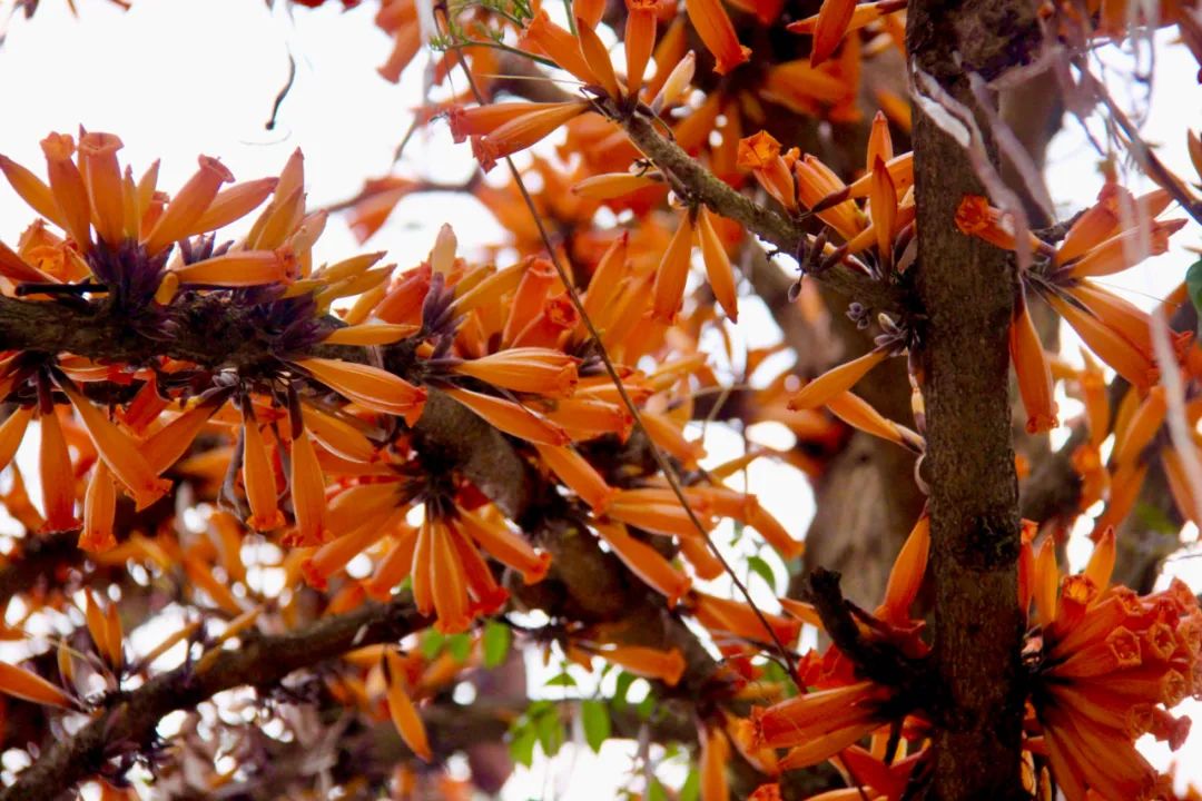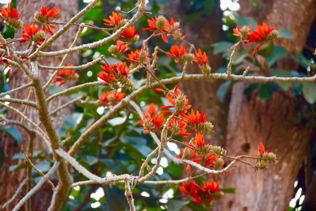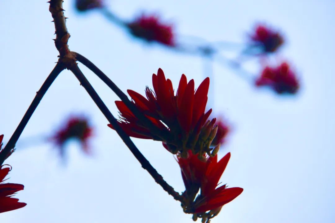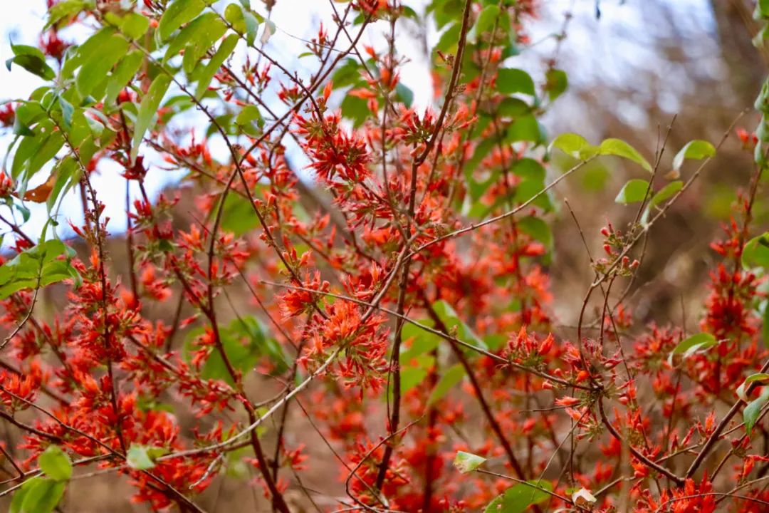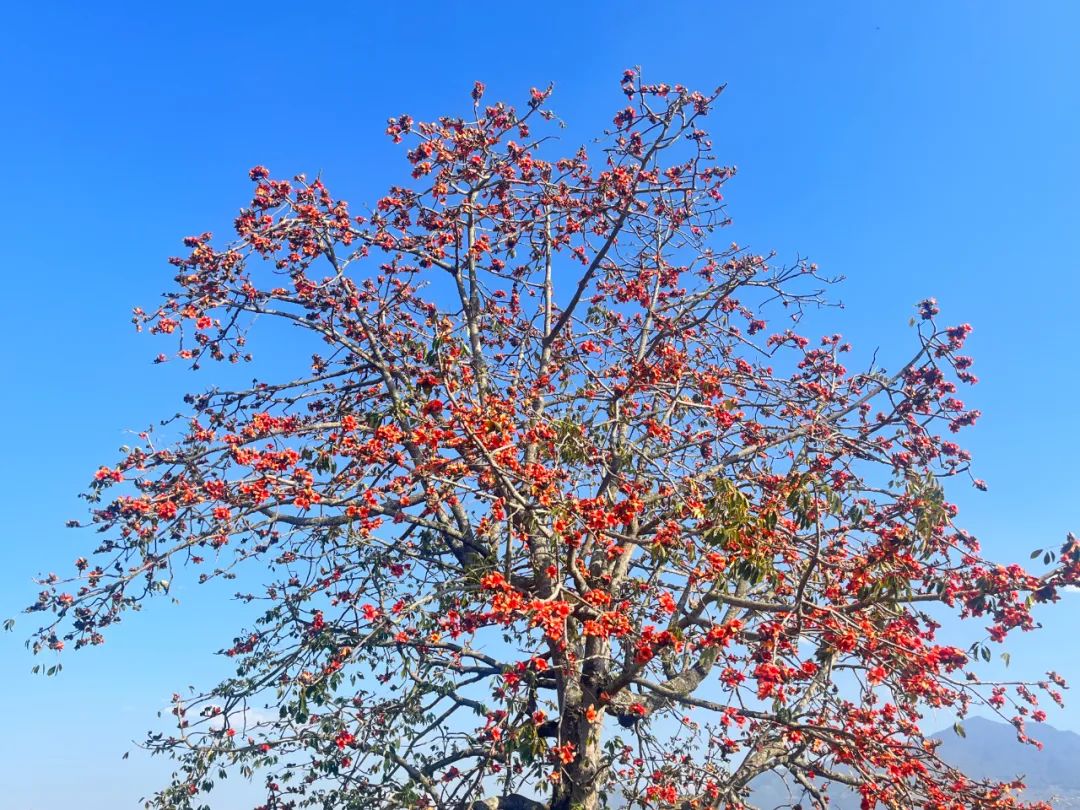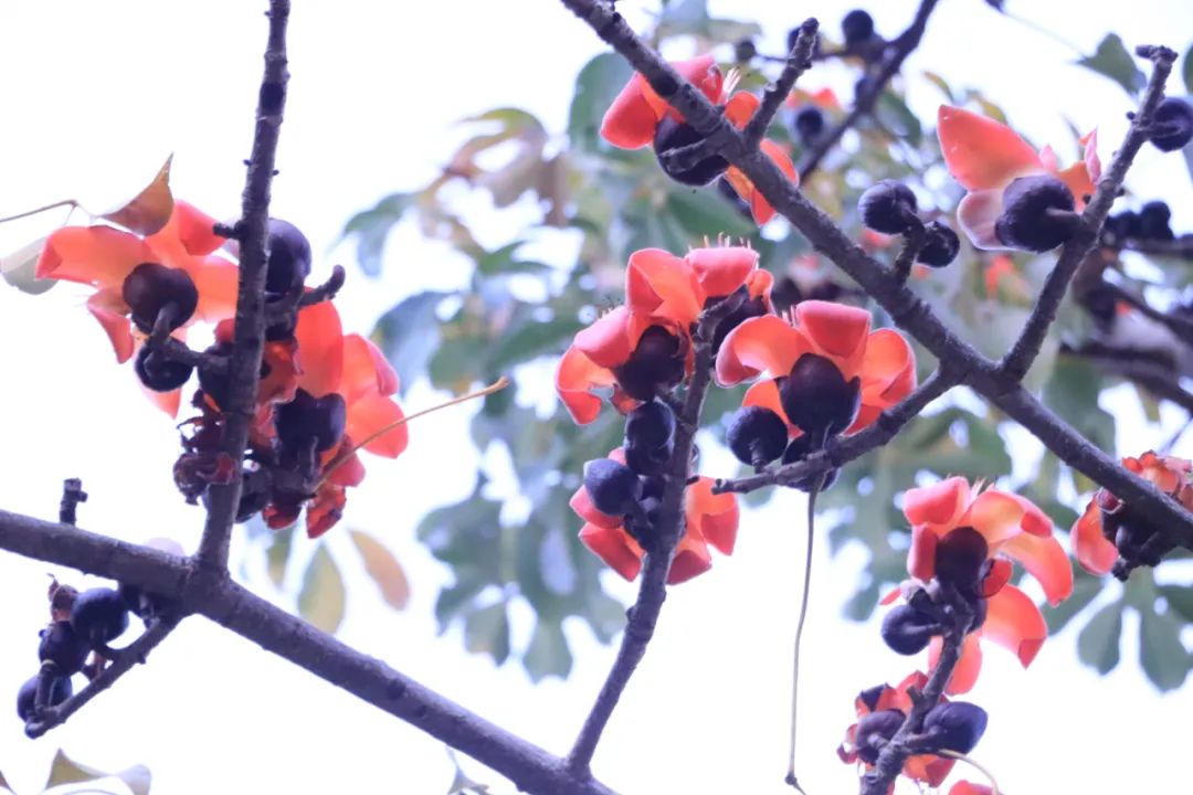 春日百花图里,绒苞藤在散发着满树的心事,火烧花在炽热的绽放温情,虾子花在深情地吐露馨香,橘子花在淡雅地窃窃私语,木棉花在用怒放谱写红艳艳的诗,水茄在用白花五角星孕育一道美味,淡黄的芒果花在成簇绽放,白花羊蹄甲在枝头嬉戏,三角梅在用沾满浓艳色彩的笔描绘多彩画面,染饭花聚集成花簇散发出阵阵芳香……