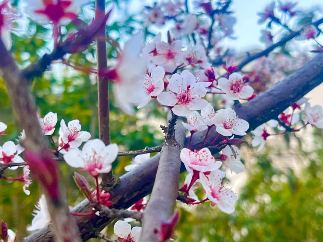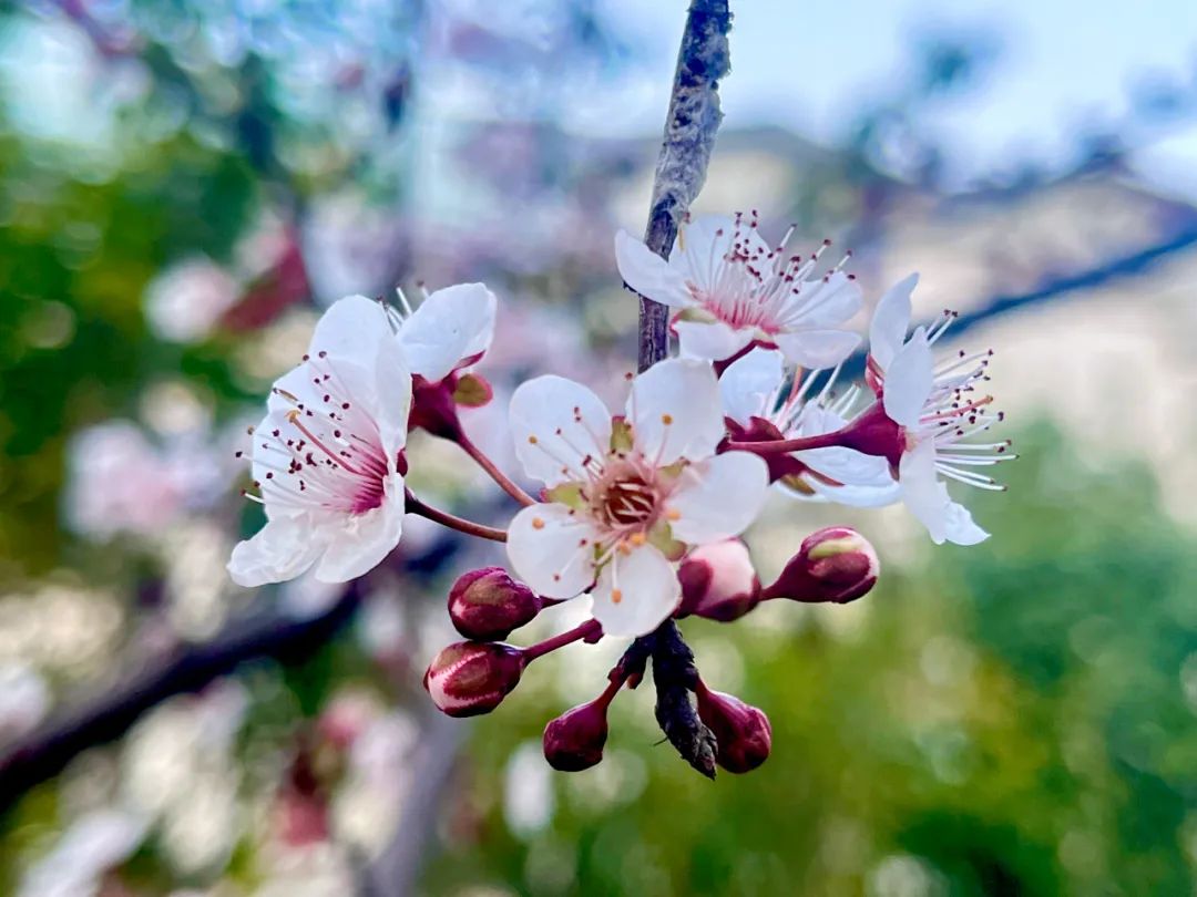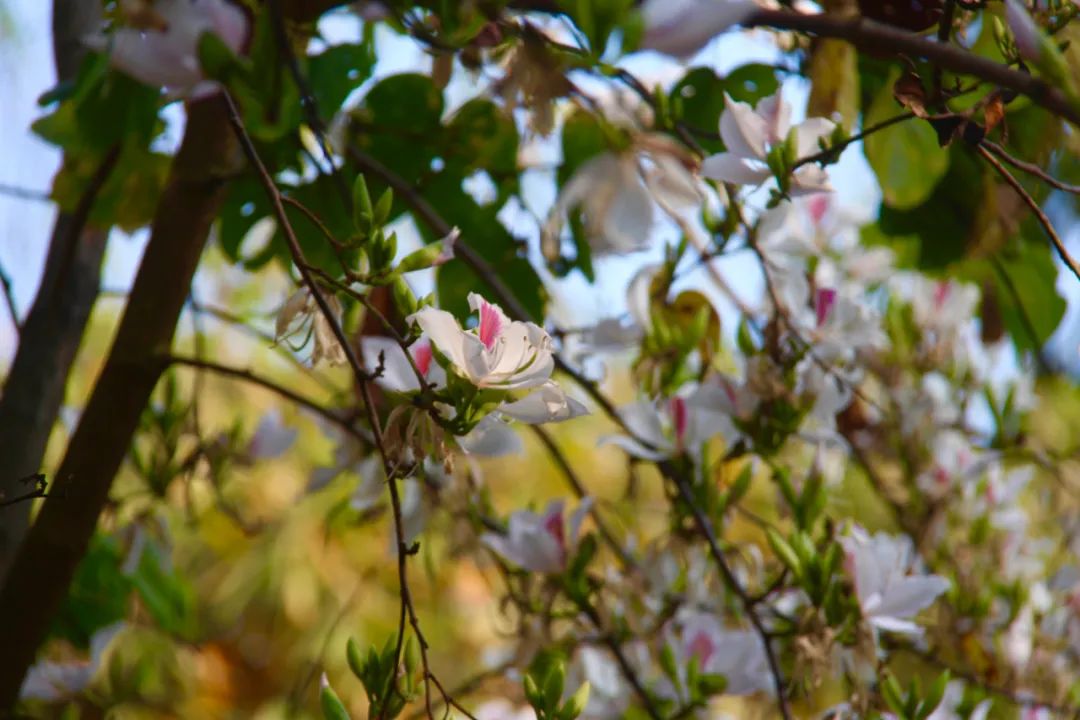 晨曦初露、朝阳升起,春日的晨光挥洒暖阳,一束束光会穿过树叶,在脸上落下点点光斑,阳光随着树影一闪一闪,在木城的春日百花图里一路走过,你会觉得,这是一镜到底的电影片段。