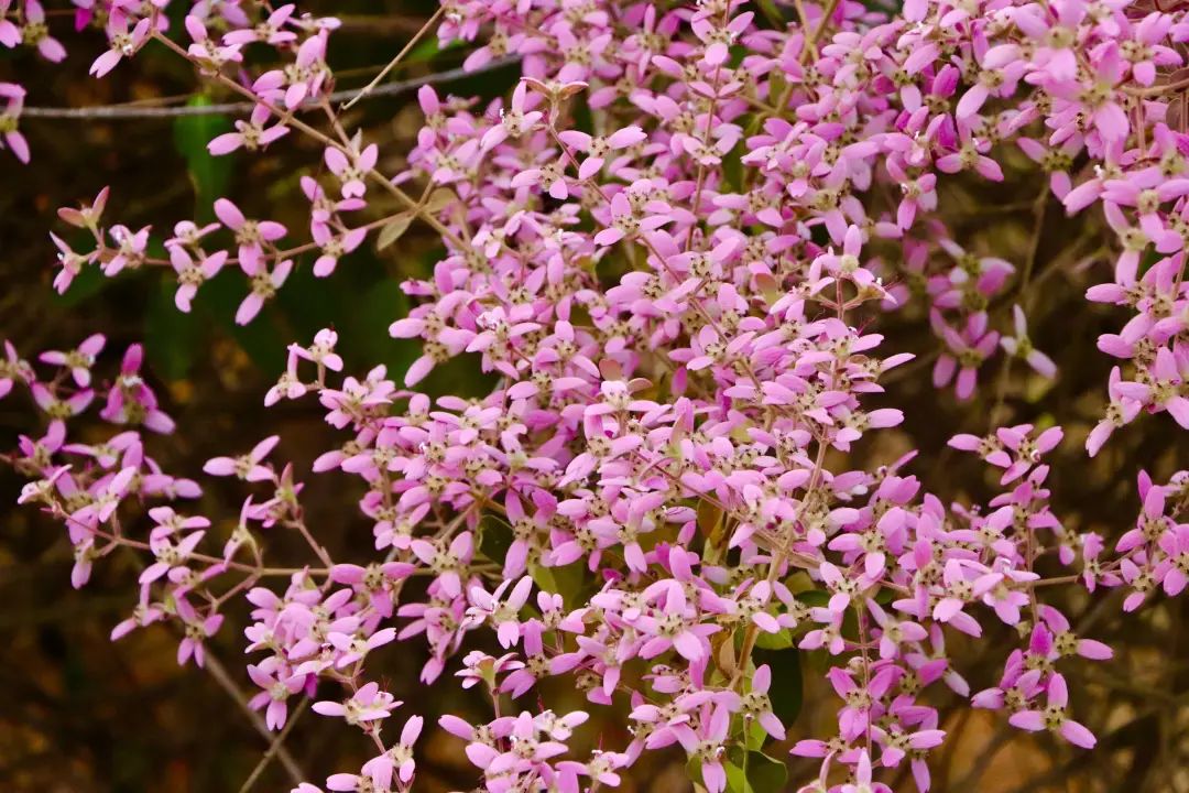 徜徉在春意萌动的村野田间,远远望去,绒苞藤繁花锦簇,密密麻麻,宛如飞舞的蝴蝶挂满藤蔓,给木城披上了毛茸茸的花衣。