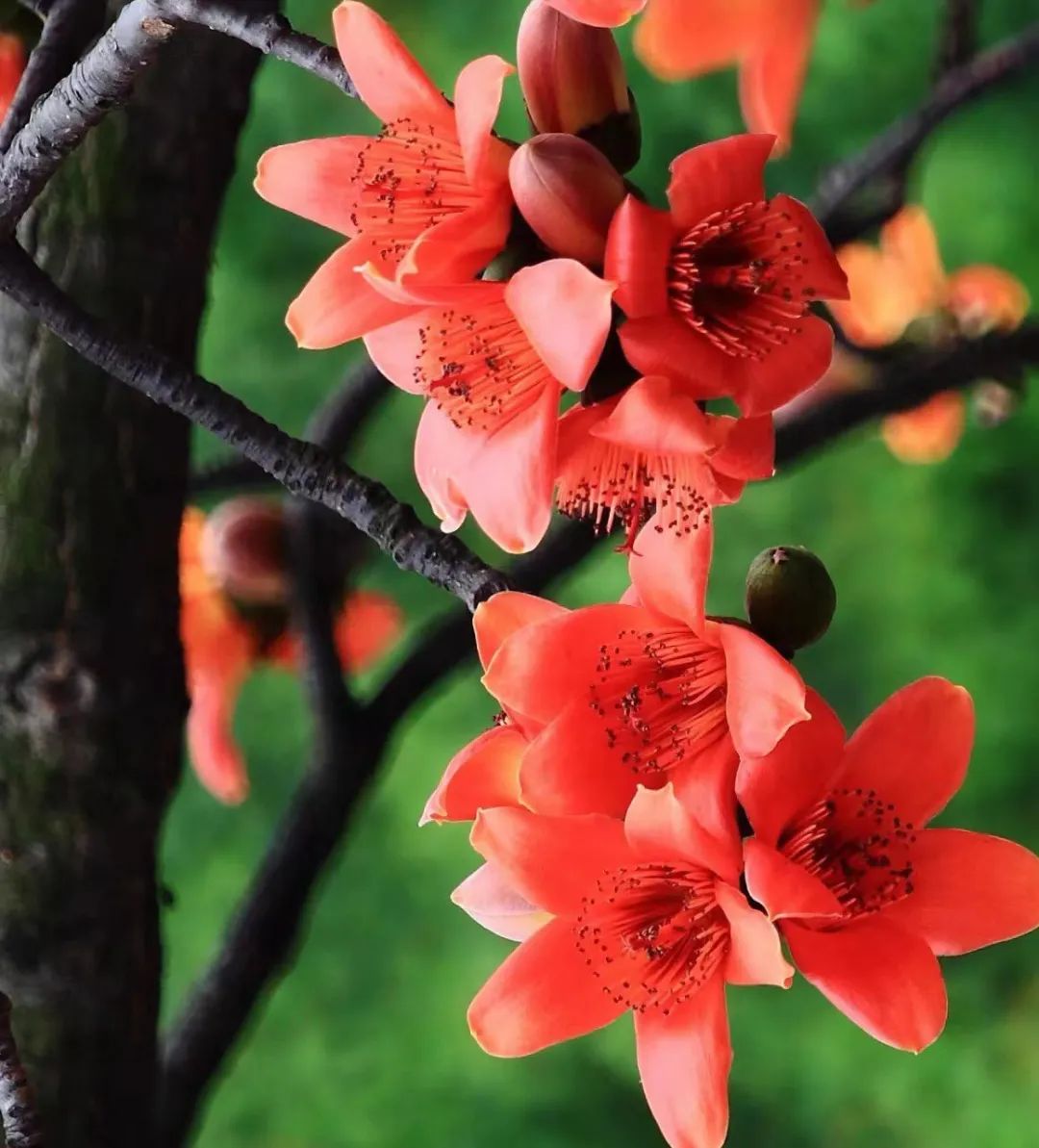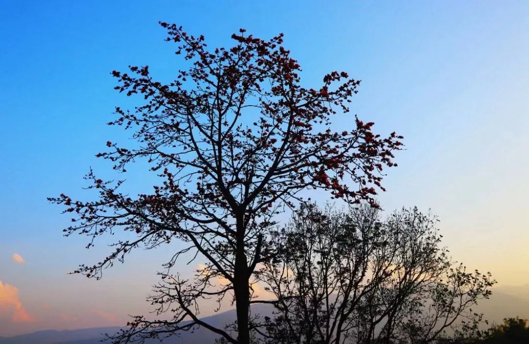 每年二月,龙陵县木城乡的木棉花便竞相开放,唤醒了木城的春天。在田间地头、山坡上、公路旁、河岸边,不经意间抬头,便能看到木棉花傲立枝头,红艳而不媚俗,鲜红的花朵引得动物前来驻足,在天空和山野的映衬下显得更加灿烂热烈。