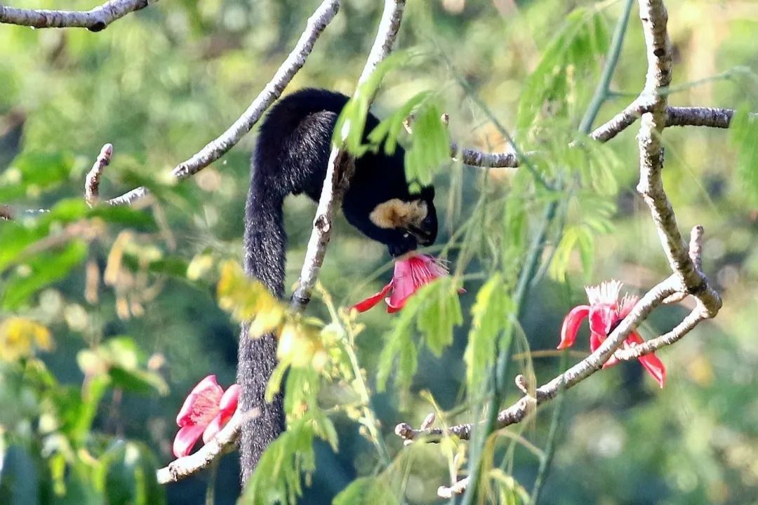 国家Ⅱ级重点保护野生动物巨松鼠采食木棉花