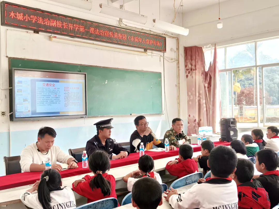 为进一步加强校园法治宣传力度,增强学生知法学法守法的法治意识,充分营造法治校园的良好氛围,2月16日,由木城司法所牵头乡边境派出所和乡综治办到木城小学联合开展“法治副校长开学第一课法治宣传进校园(未成年人保护专场)”法治专题宣讲活动。