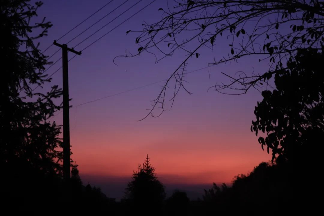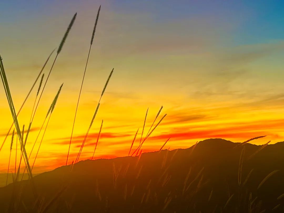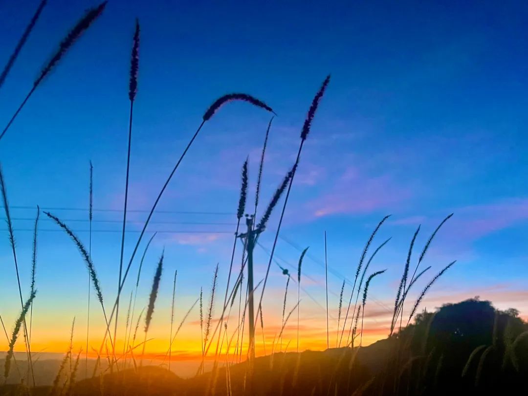 木城的傍晚时分,总有一种魔力会让你过目不忘、惊叹不已。夕阳渐渐西沉,在橘红色的光映衬下洁白的云彩变得丰富多彩,粉的、红的、橙的、黄的,多彩的晚霞在奇妙地变换着,颜色越变越深,最后绘出一幅幅不同的重彩画,这是属于木城的浪漫。