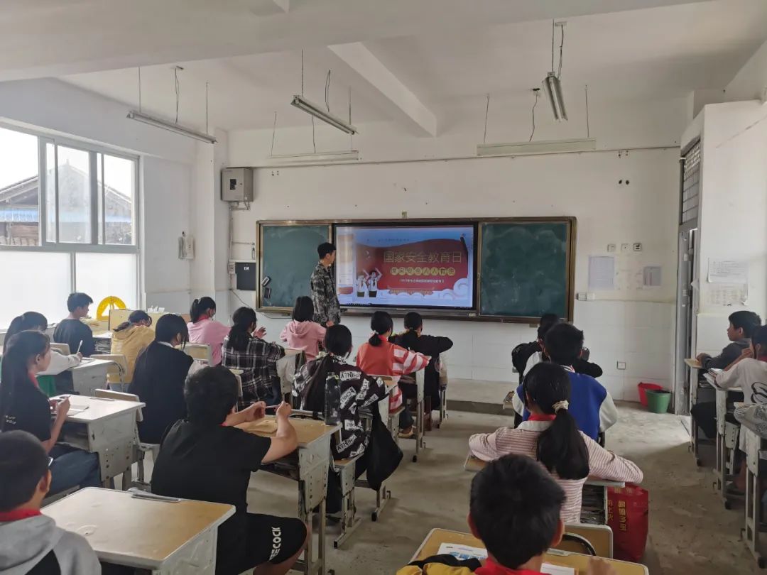 国家安全教育进校园,师生共筑防护墙。为增强广大师生维护国家安全意识,警惕宗教极端思想对国家总体安全的严重危害,维护校园和谐安全稳定,木城乡司法所、边境派出所、综治中心等多部门联合,各挂村领导深入校园,让国家安全教育走进课堂。为学生们讲述了设立全民国家安全教育日的现实意义,并以真实的案例生动为学生们讲述了当前的网络安全形势以及网络安全事件的负面影响,引导学生树立网络安全防范意识,提高甄别危害国家安全行为的能力,成为保护国家安全的小卫士。