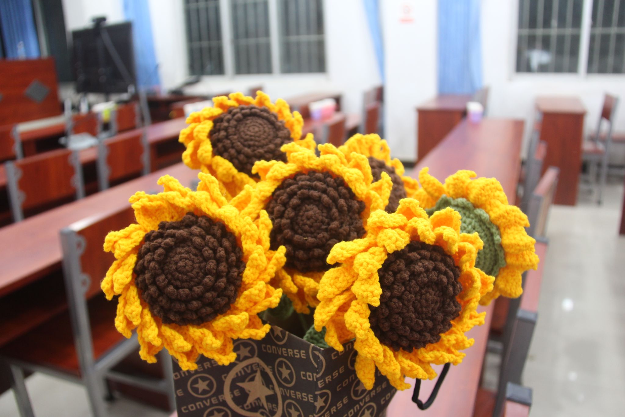 钩针是一门美丽的艺术,可以用钩针钩织很多漂亮的物件。活动现场,志愿者现场手把手示范教学,向大家展示成品,随后介绍材料包并发放给大家,详细介绍了编织前需要准备的工具,线、针的种类和使用方法,以及其他必备便利工具及使用方法,耐心地从基本手法到花样技巧逐步深入讲解。大家一起起头、勾线、打结......一朵朵精致的小花在大家手中成型。