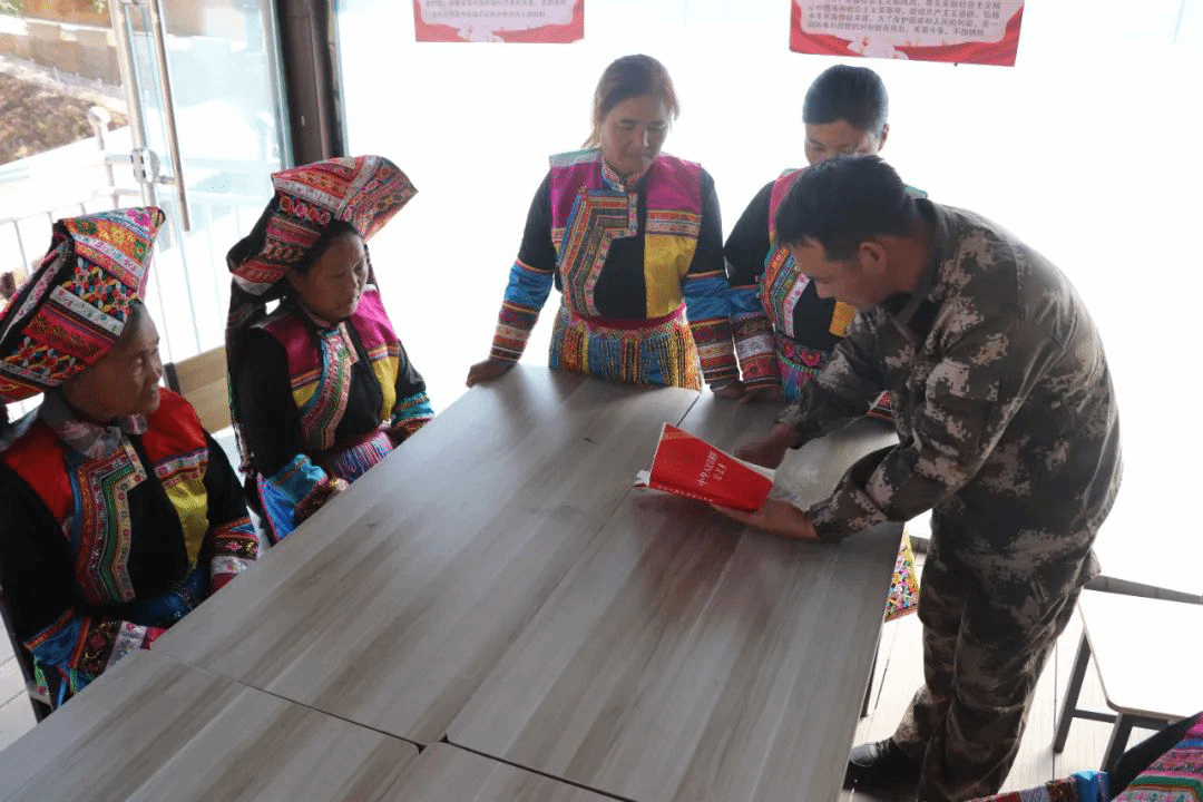 践行法治为民初心,做普法宣传的“领头雁”。他一直把宣传法律知识,增强村民的法治意识,让他们自觉践行遇事找法、遇事靠法,争做守法公民作为自己的职责。他知道要想让村民们法治意识牢记于心,外化于行,离不开长期以来的普法强基宣传与引导。他把在平时工作中碰到问题、老百姓前来咨询调解涉及的法律、民事诉讼都记在自己的本子上,他不断学习和研究然后利用每次走村入户为群众答疑解惑。针对社区里很多老百姓对土地承包政策、林地纠纷、婚恋纠纷、预防未成年人犯罪、协助他人偷越国边境等不理解,导致矛盾纠纷产生,他利用业余时间学习《中华人民共和国民法典》《云南省边境管理条例》《中华人民共和国陆地国界法》等学习,重点学习婚姻家庭、土地承包经营权、宅基地使用权、继承、边境管控等内容,以身作则,并向百姓做好普法宣传,引导群众通过合法合理途径解决自己问题,他不仅让自己“明白”,更带邻居民尊法、守法、学法、用法,让社区多了些“明白人”,法律面前少了些“糊涂人”。