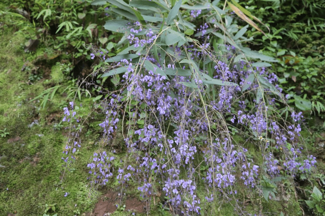 在木城的大山里,进入冬季,就会被一片片紫色的花海覆盖,这里生长着无数棵形态各异的散黄草,它们共同撑起了一道美丽的风景。散黄草是一种灌木,植株高度一般在30—200厘米之间,叶子形状学术上叫披针形,叶基较宽,上端尖细。色泽翠绿,边缘有绒毛,给人一种简约大气的美感。它的花朵呈紫色,花瓣向外翻卷,犹如一只只小巧的蝴蝶在空中翩翩起舞,成为山间的一道美丽风景。