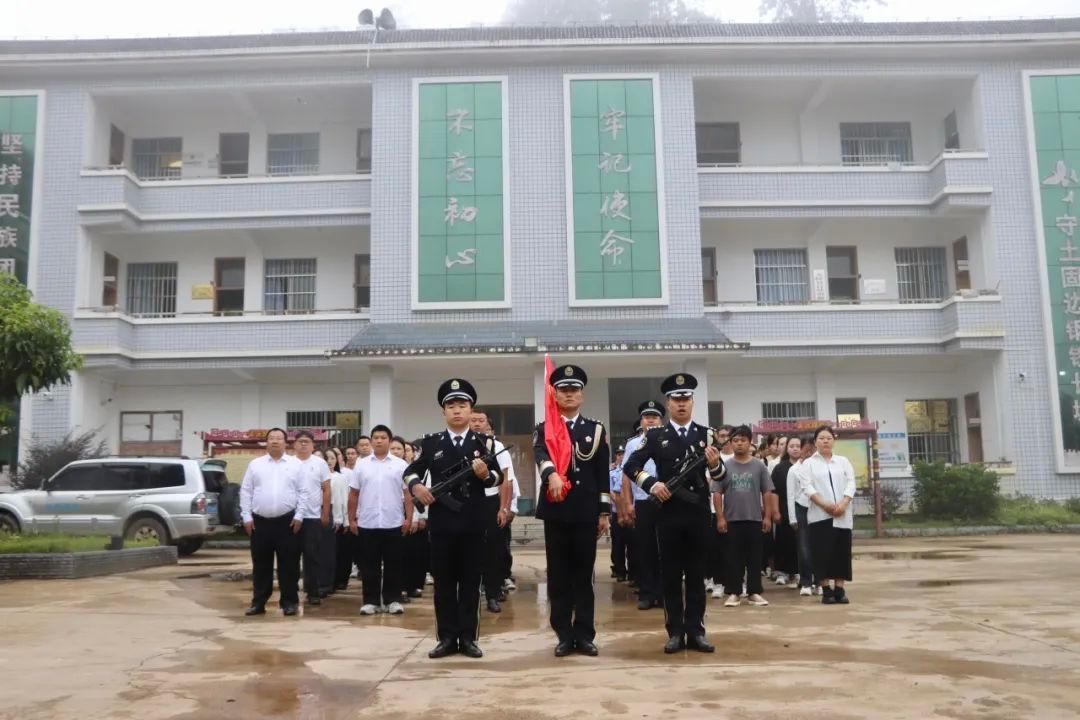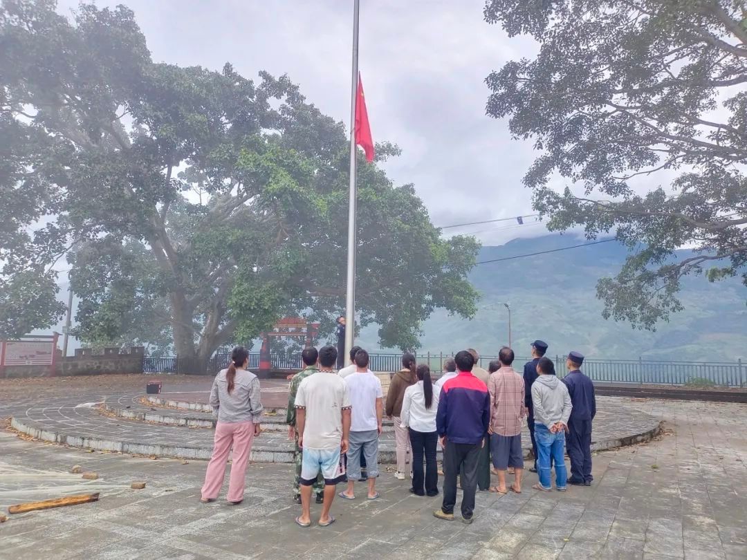 木城乡党委政府协同木城边境派出所、卫生院、信用社等驻木单位与联防所、各村同步举行庄严的升旗仪式。全体党员佩戴党员徽章,整齐排列,在激昂的《义勇军进行曲》中,鲜艳的五星红旗缓缓升起,党政军民共同仰望国旗,齐唱国歌,场面庄重而严肃。随着国旗的升高,爱国之情油然而生,大家纷纷为祖国的繁荣富强献上衷心祝福,共同期盼祖国更加昌盛。通过升旗仪式,群众的爱国情感和民族自豪感得到了进一步强化,为这一全国欢庆的日子增添了庄严氛围。