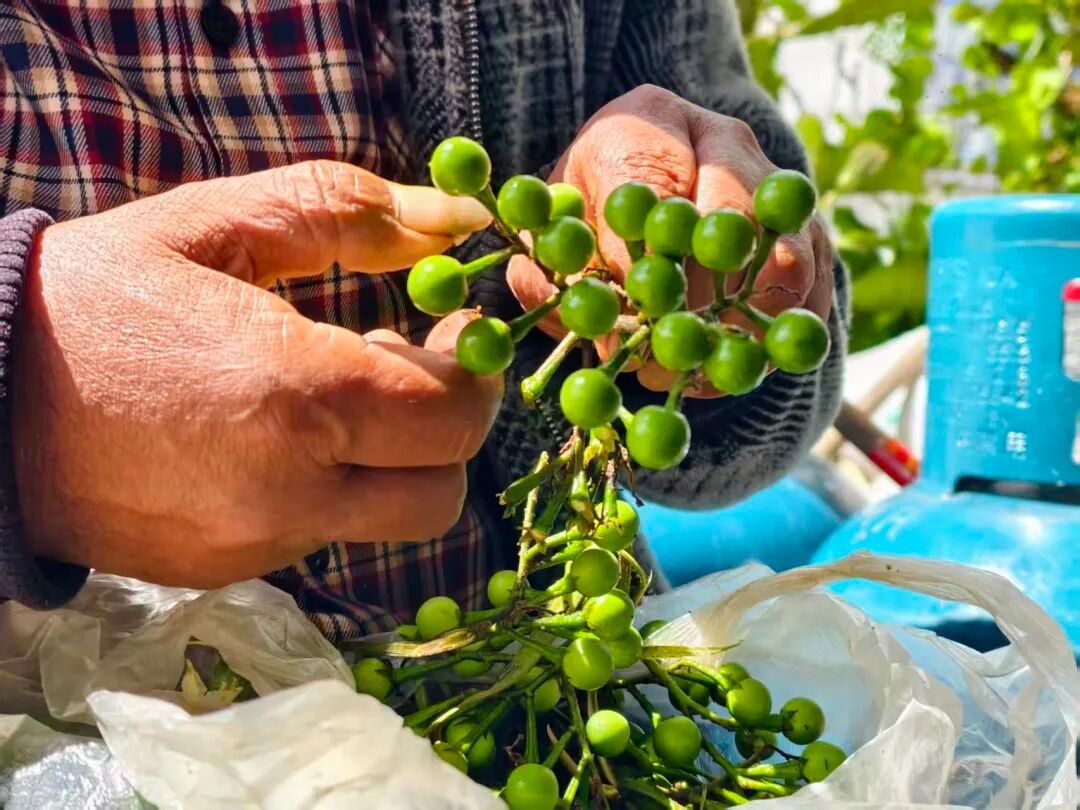 在木城部分湿热气候的地区,苦子果四处生长,于是善于尝试的木城人就让苦子果成为了餐桌上的“常客”。它形似小番茄,却带着独特的草木清香与微苦。别看它“苦”,可人家是食药同源的好物:其中含有的龙葵碱,清凉解毒,缓解上火、咽喉肿痛,帮助消化、解腻开胃。