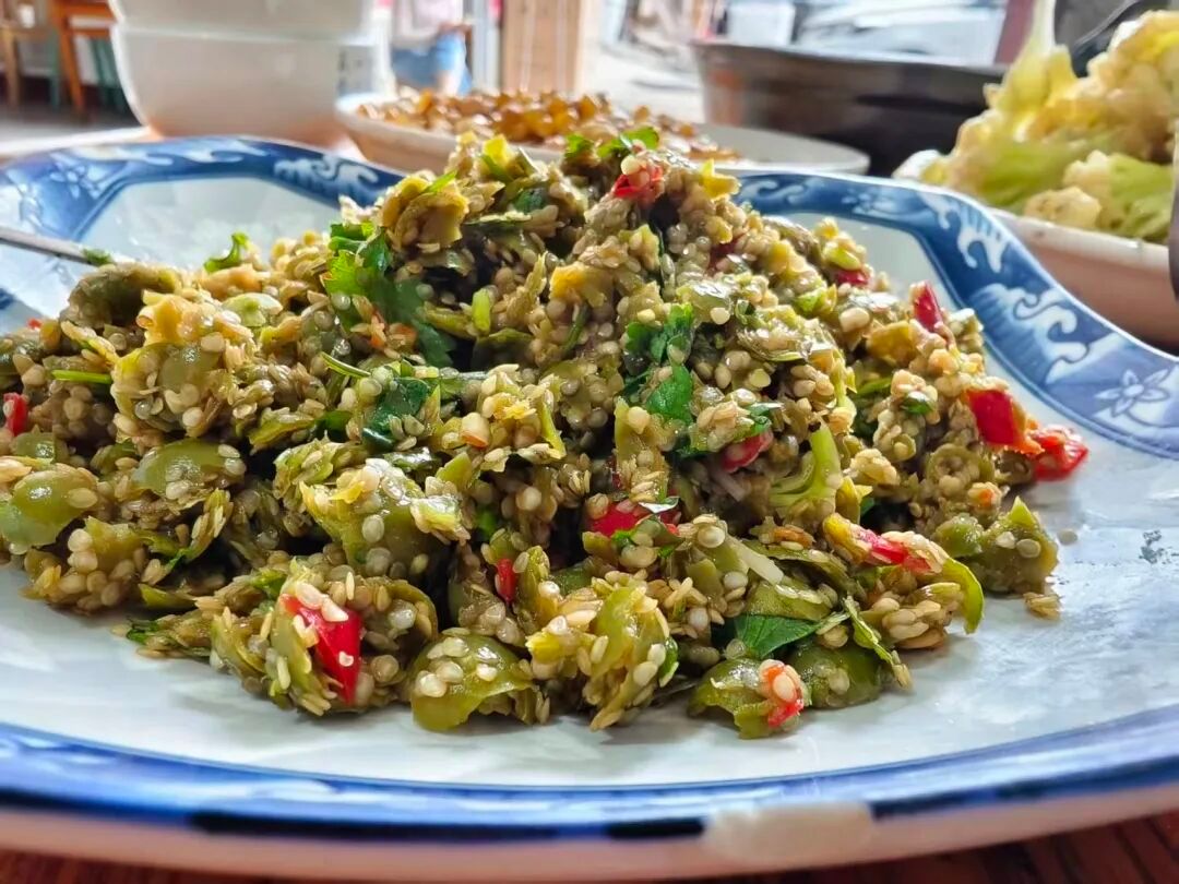 直接凉拌苦甜口味更加浓郁,但对于第一次尝试的朋友来说还是一个不小的挑战,因此可以采用做撒撇时过滤苦水的苦子渣,制作这道美味。将苦子果、柠檬汁、小米辣,舂出香气,简单调味,口感清脆爽口,微苦回甘,酸辣开胃的凉拌苦子果就做好了,天气炎热时吃一口,瞬间清醒!