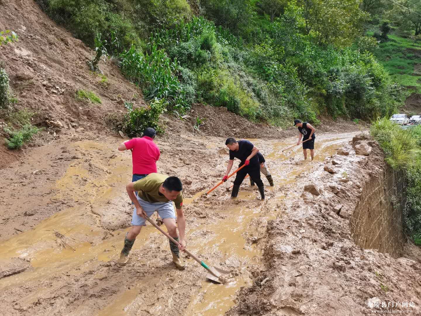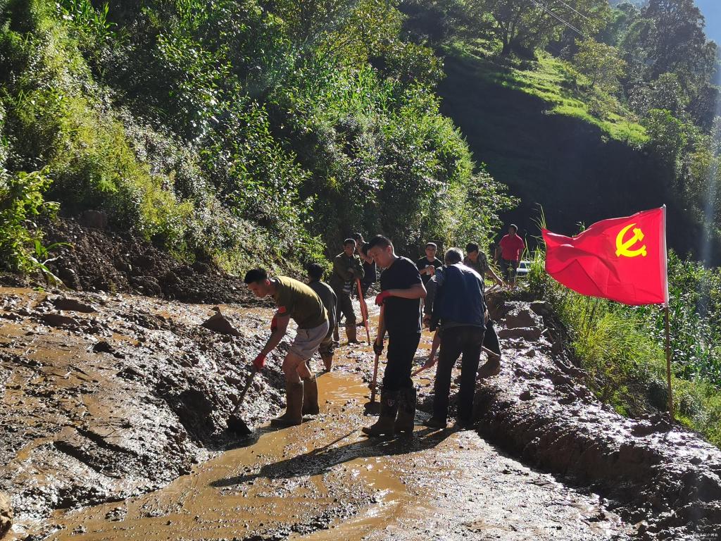 临危受命,关键时刻显担当。8月25日,突如其来的大暴雨导致杨梅田村至碧寨路段发生多处坍塌,其中酒房组大荒地处坍塌最为严重,直接导致道路中断,给正直核桃丰收季节的村民生产生活带来巨大阻碍。灾情就是命令,防汛就是责任,杨梅田村党总支当机立断,组织党员群众赶赴塌方一线,总支书记亲自带头,撸起裤脚,抬起洋铲,提起锄头,你清淤泥,我搬石头,他通沟渠,现场忙碌而有序,尽管汗水浸湿衣衫,淤泥溅到脸上,大家依旧激情不减,热情不退,齐心协力确保道路通畅。