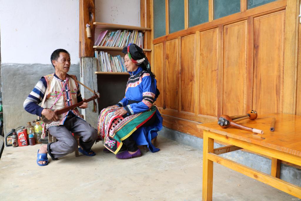 年过五十识文断字的麻林生从书架上取出一本曲谱展开,把妻子唤到身旁,拨响三弦琴:“明天晚上要和小水路寨村民搞联欢,有咱夫妻俩的合唱节目,得排练一下。家里有个书架真好,两个上小学的孙子的书有了‘家’,咱的一些演出资料和科技书刋也有了‘窝’,随看随取,看完后又书还巢,挺方便的。”合着三弦琴悠扬的旋律唱出心中的歌:“麻家寨的泉水哟,为啥这样甘甜?是共产党凿开的泉眼,啊傈僳的生活哟,为啥一天比一天红火?是人民政府为阿傈僳建起了美丽家园……”