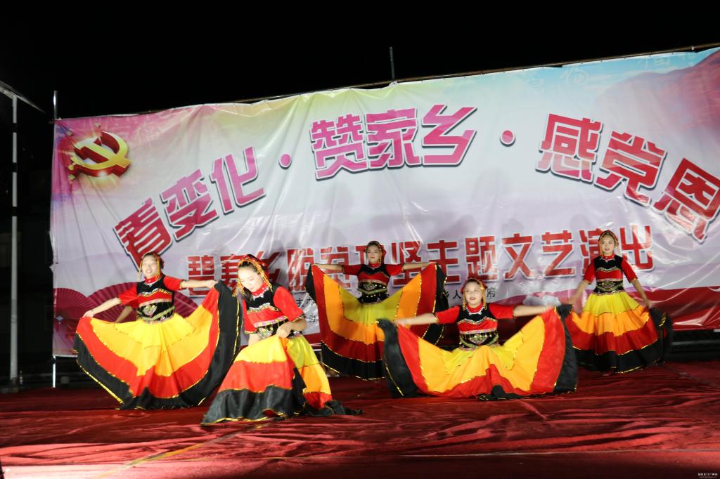 尚处小满,炎炎夏暑却提前光临了碧寨。趁着舒爽的江风和慵懒的夕阳,5月20日傍晚,碧寨乡滨江小镇文化广场热闹非凡,经过紧张的筹备,群众翘首以盼的碧寨乡2020年“看变化、赞家乡、感党恩”脱贫攻坚主题文艺巡演首场表演在这里正式拉开帷幕,现场锣鼓喧天、红旗招展、人山人海,表演在舞蹈《最美的中国》中正式开始。随后,碧寨乡独具特色的山歌节目《梭夹石》、歌唱祖国美好的舞蹈《我和我的祖国》、感党恩的打歌山歌融合节目《唱着感恩山歌来打歌》、突出营造尊师重教氛围的小品《找家长》等依次轮番登场,更有碧寨卫生院年轻小伙结合疫情防护、健康扶贫工作,为弘扬中医文化而自创的《碧寨养生秀》让人眼前一亮,迎来阵阵掌声。