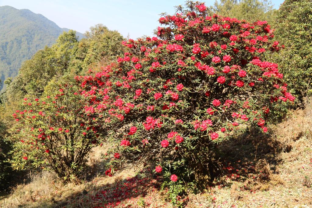 三月,初春的料峭寒意已逐渐消解了,春风吹开了一冬的寒冷,也唤醒了海拔3000米以上才会盛开的大树杜鹃——映山红。碧寨最好观赏映山红的地方莫过于麦子坪村,层峦叠嶂、漫山红遍,仿佛热情地迎宾树生长在碧寨的西大门。当清晨的第一缕阳光照耀在碧寨大地,群山的侧脸也温柔起来,在鬓边的映山红衬托下,娇俏又美好。近日来,踏青爬山的游人们逐渐增多,安静的大山热闹了起来,人们不远千里来到这里相聚,在别有韵味曲折的小道上停停走走,停时风过鼻尖留香,走时鸟啼耳畔醍醐,时光荏苒、沧海桑田,山一直在这里,景已过千番。赏花赏景赏山河,观鸟观云观天下,高山上的麦子坪村是你的不二之选。