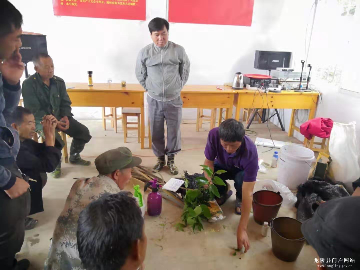 党建引领强作风,干部带头促发展,加强产业发展建设,带领群众增收致富,发挥党组织战斗堡垒作用和党员先锋模范作用,7月24日,天宁社区村民委员会和驻村工作队到天宁社区毛草山小组活动场所开展大树茶嫁接技术培训会,惠及附近3个村民小组。