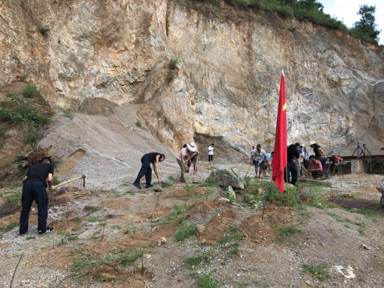 7月28日,碧寨乡组织全体干部职工及部分村干部、党员群众共计100余人,到碧寨村新寨子组大丫口采矿点、滥坝寨村满散梁子采砂场、滥坝寨村花椒寨采砂场三个点开展矿山复绿植树活动。