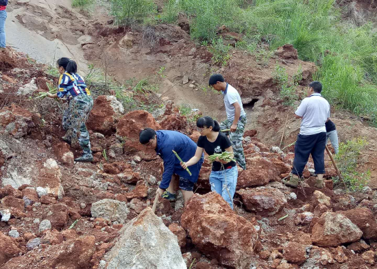 在义务植树活动中,大家顶着烈日撸起袖子,充分发扬不怕苦不怕累的精神,严格按照挖坑、扶苗、填土、压实等步骤,种下了王草、合欢树约2000株。通过此次植树活动,体现了碧寨乡持续推进生态恢复的决心和信心,营造人人参与国土绿化的行动氛围,同时也进一步改善了矿山地质环境和农村生态环境。